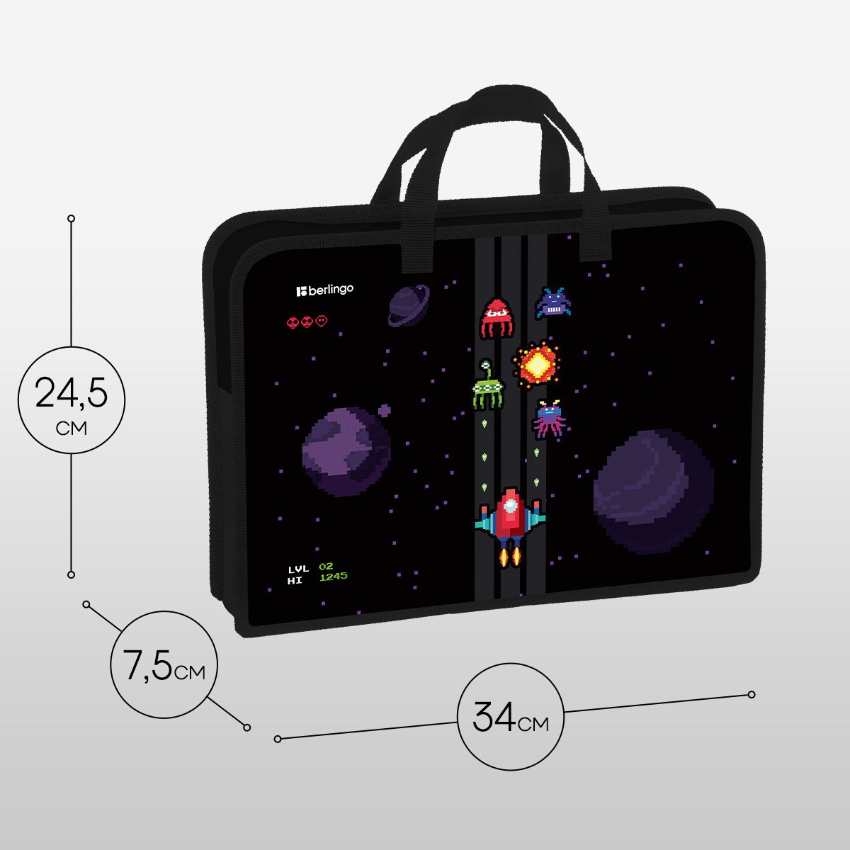 Папка с ручками 1 отделение, А4 Berlingo "Space Battle", 340*245*75мм, пластик, на молнии