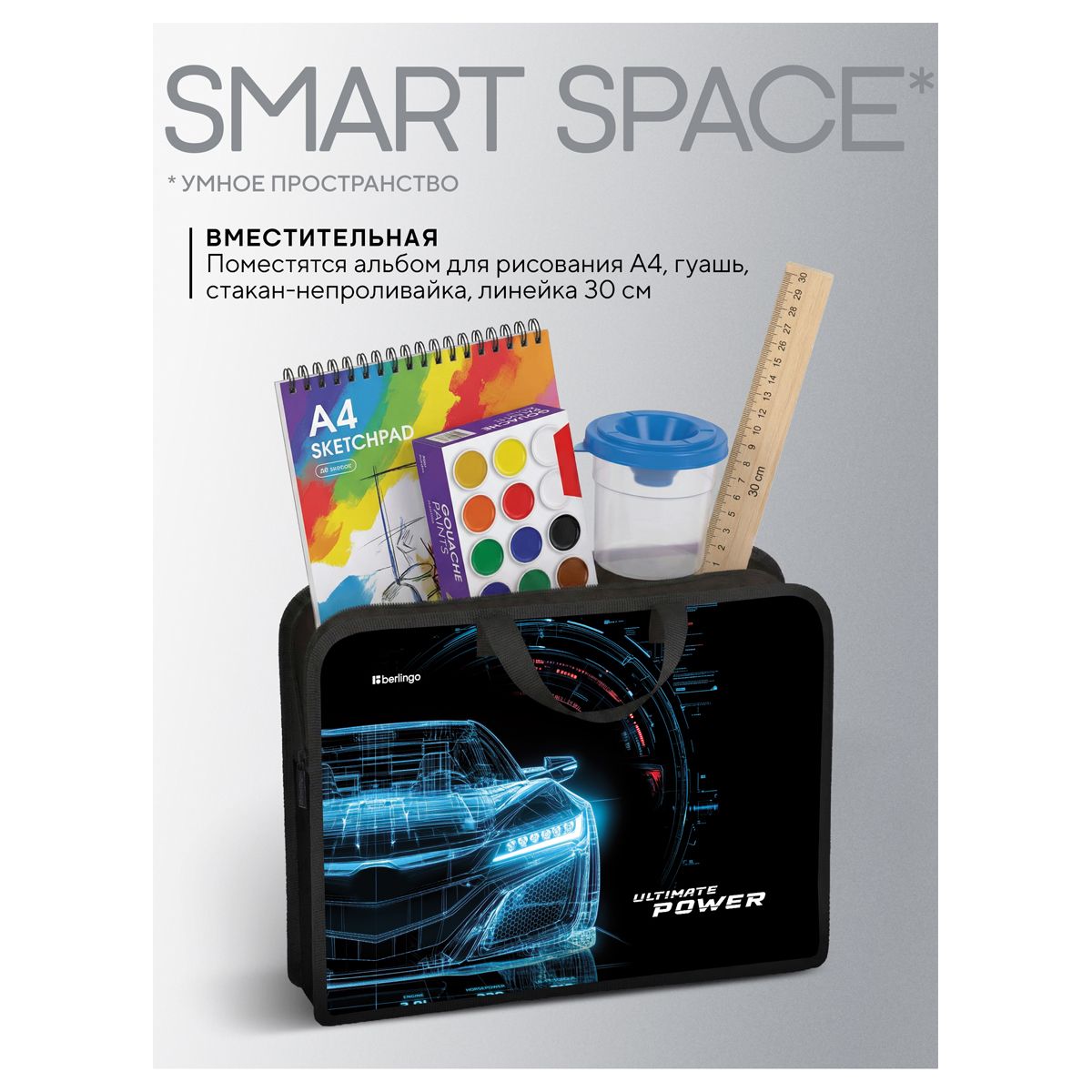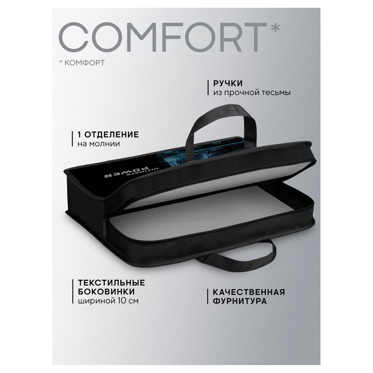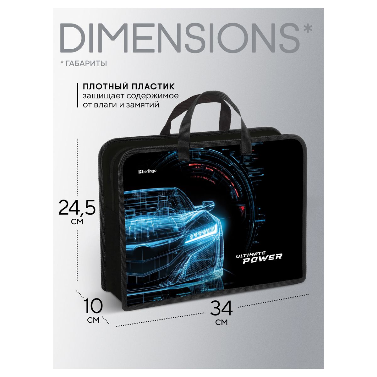 Папка с ручками 1 отделение, А4 Berlingo "Ultimate power", 340*245*100мм, пластик, на молнии