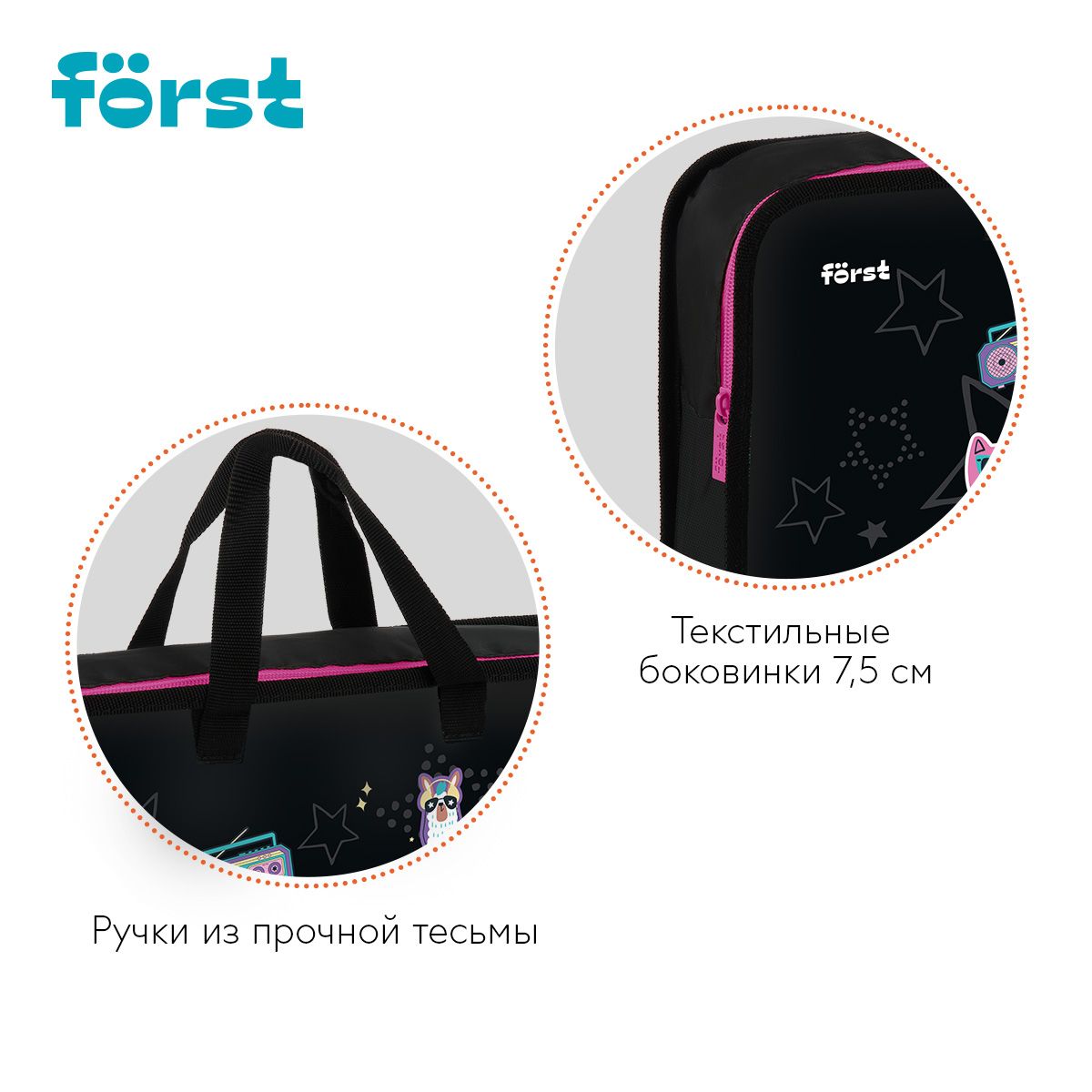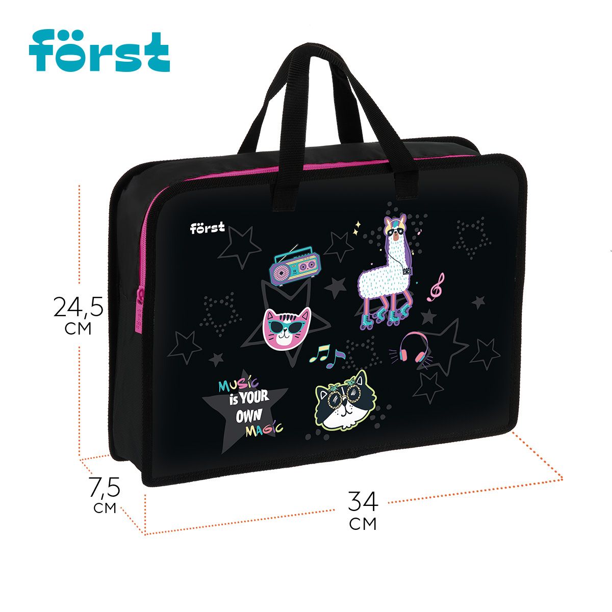 Папка с ручками 1 отделение, А4 Först "Disco Lama", 340*245*75мм, пластик, на молнии