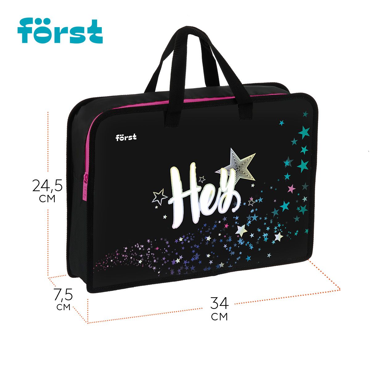 Папка с ручками 1 отделение, А4 Först "Hey!", 340*245*75мм, пластик, на молнии