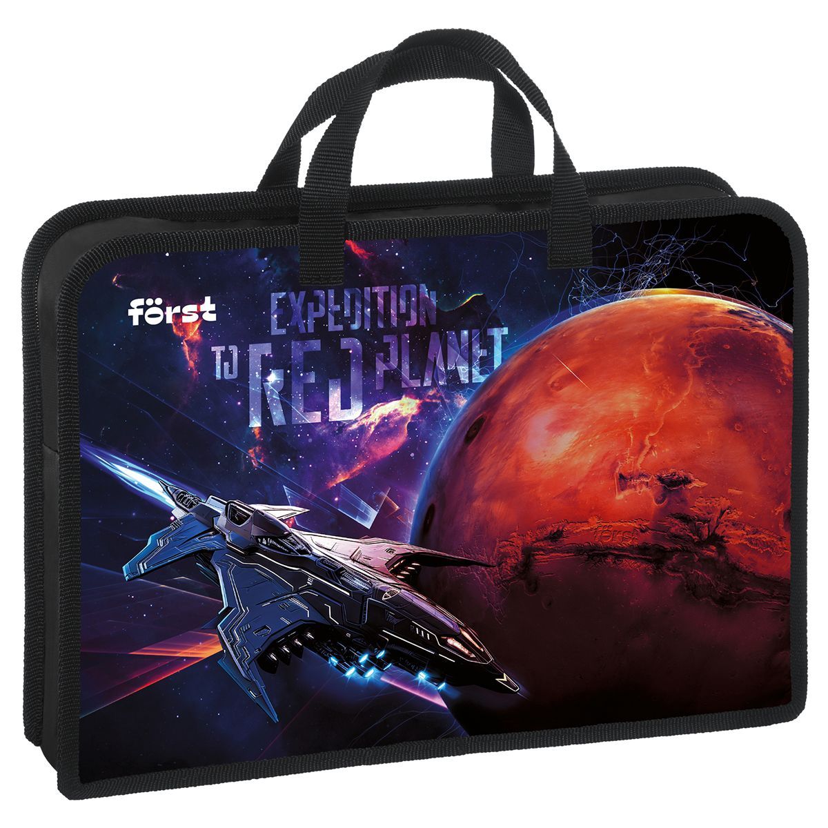 Папка с ручками 1 отделение, А4 Först "Red planet", 340*245*75мм, пластик, на молнии