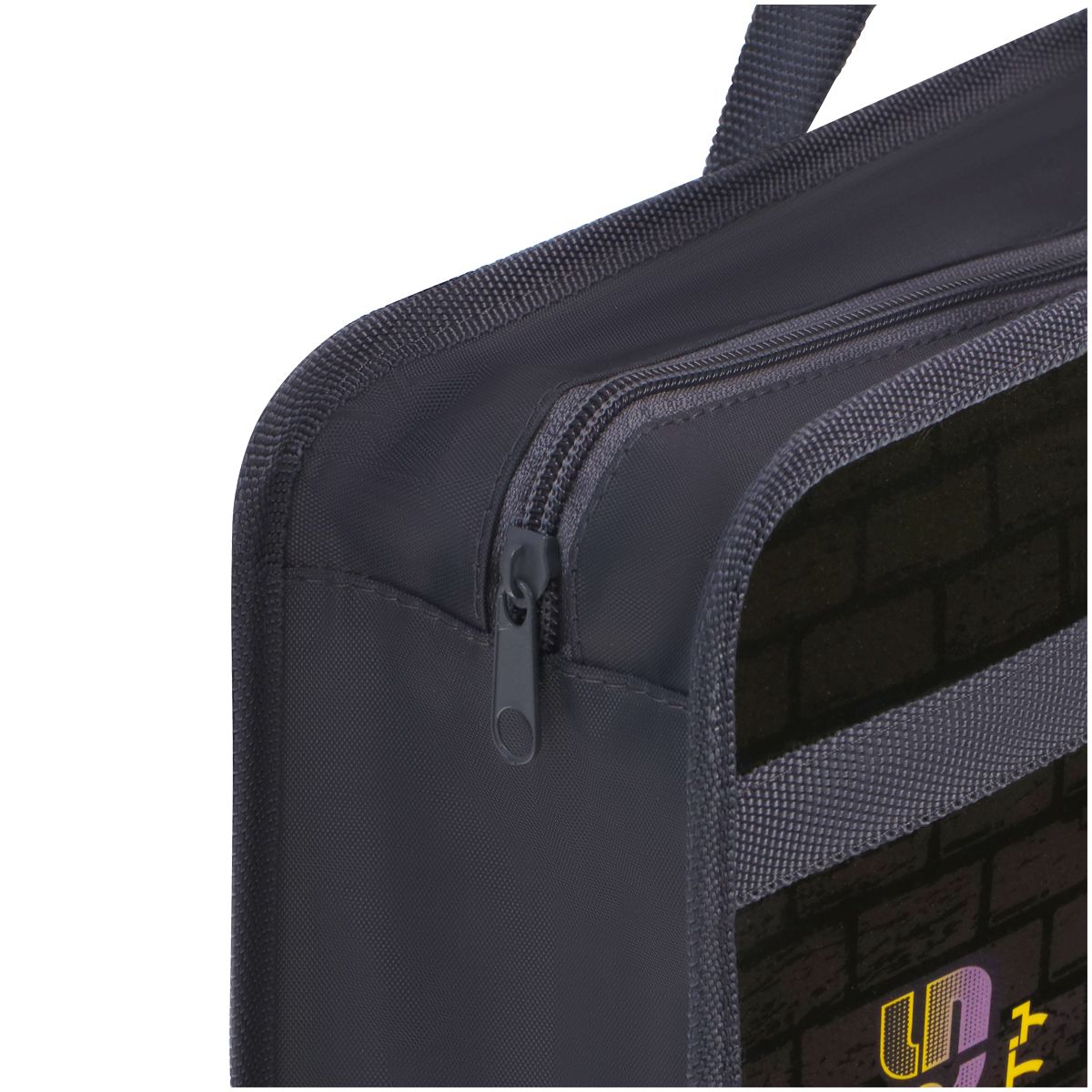Папка изготовлена из текстиля с прочным пластиковым основанием. Застёжка-молния сверху надежно защищает содержимое от грязи и влаги. Края укреплены тканевой окантовкой. Ручки сделаны из тесьмы, поэтому отличаются прочностью и не порвутся в неподходящий момент.