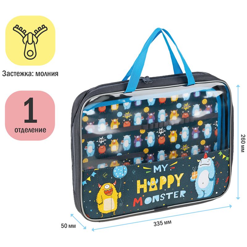 Папка с ручками А4 ArtSpace "Happy Monster", полиэстер, на молнии, 50мм