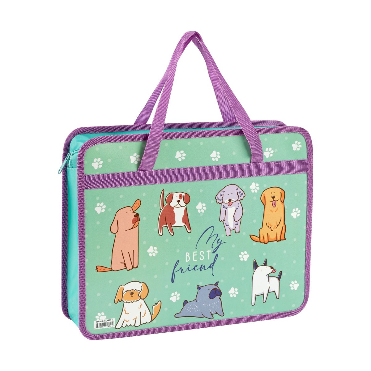 Папка с ручками А4 ArtSpace "I love dogs", пластик, на молнии, 80мм