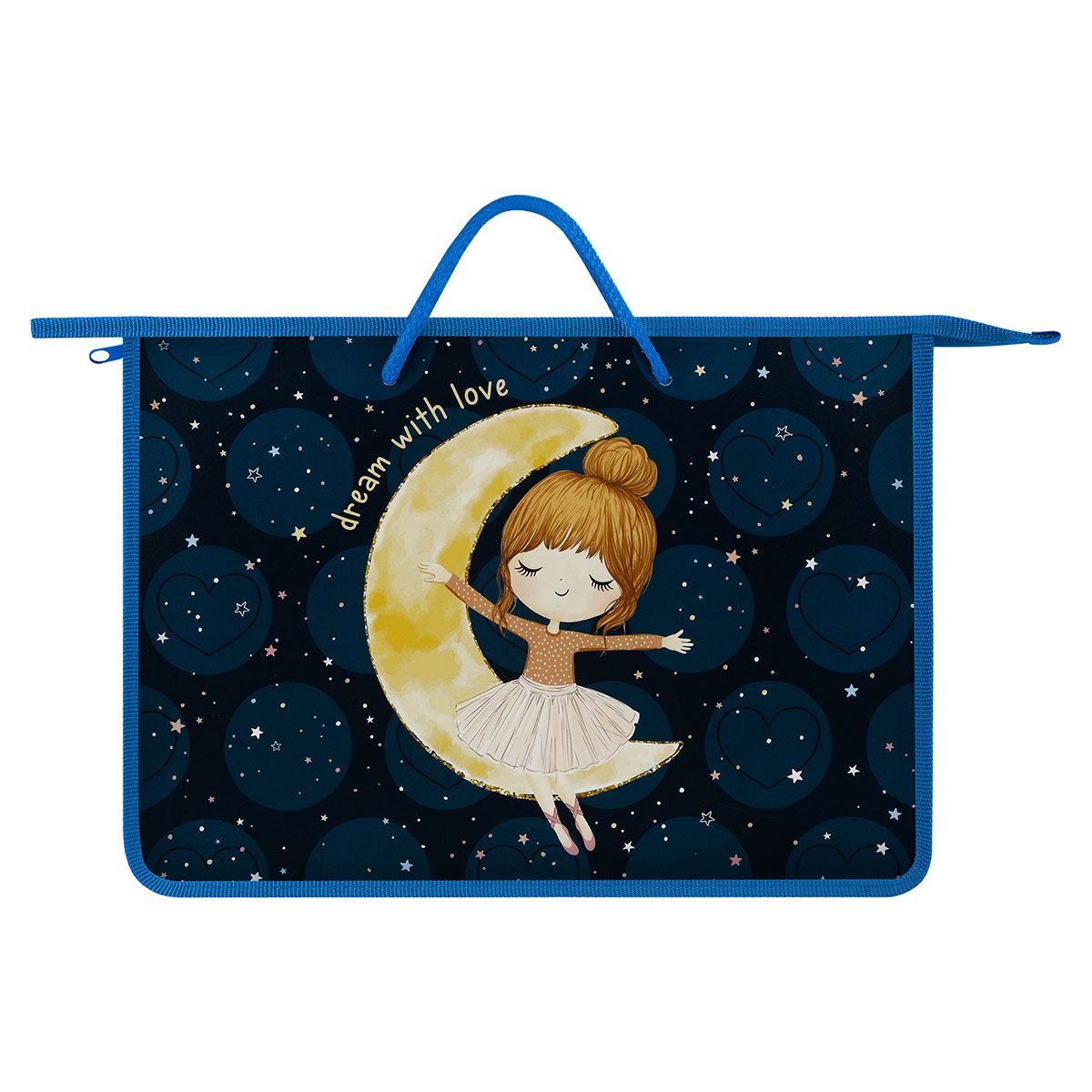 Папка с ручками А4 ArtSpace "Riding on the moon", пластик, на молнии, 75мм