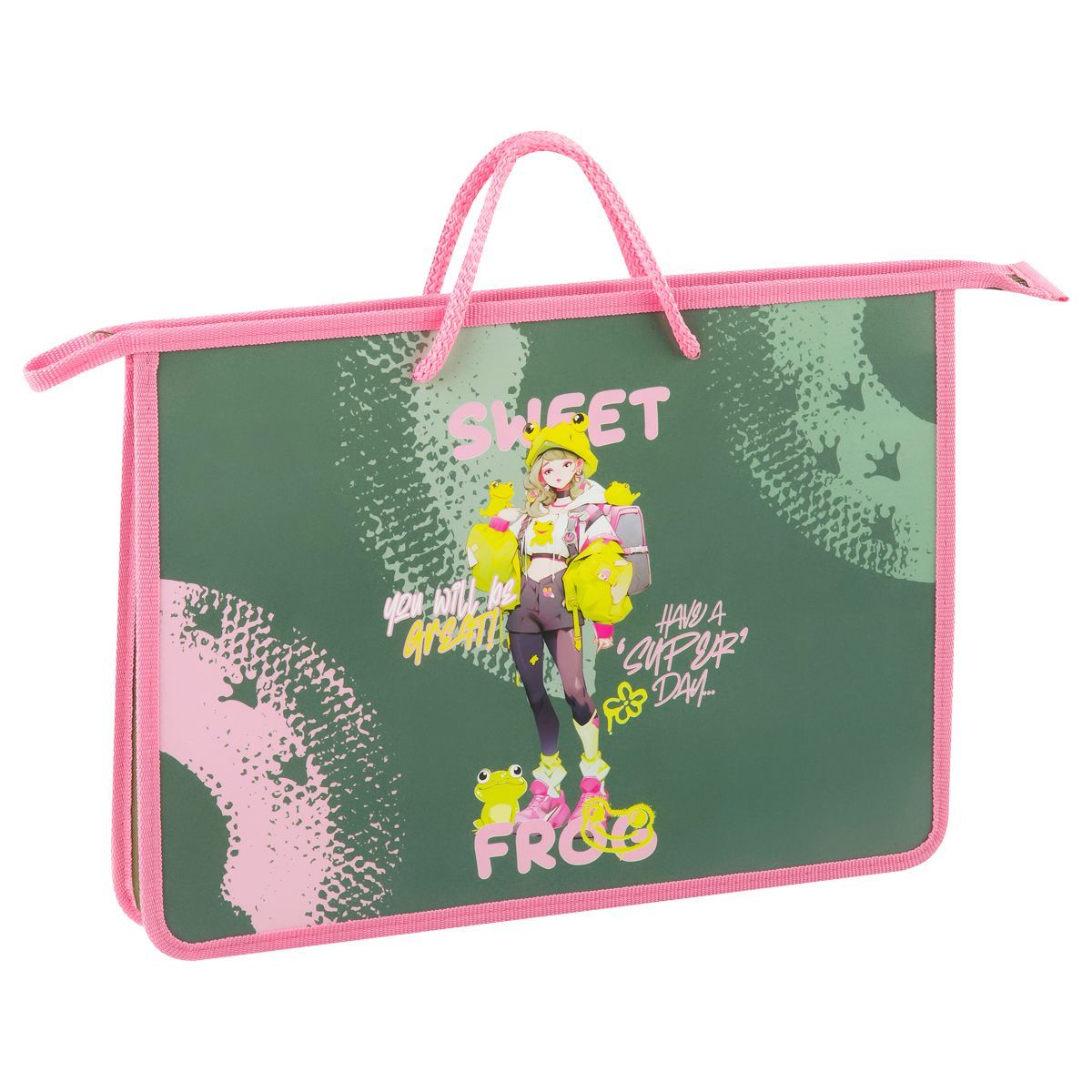 Папка с ручками А4 ArtSpace "Sweet Frog", пластик, на молнии, 45мм