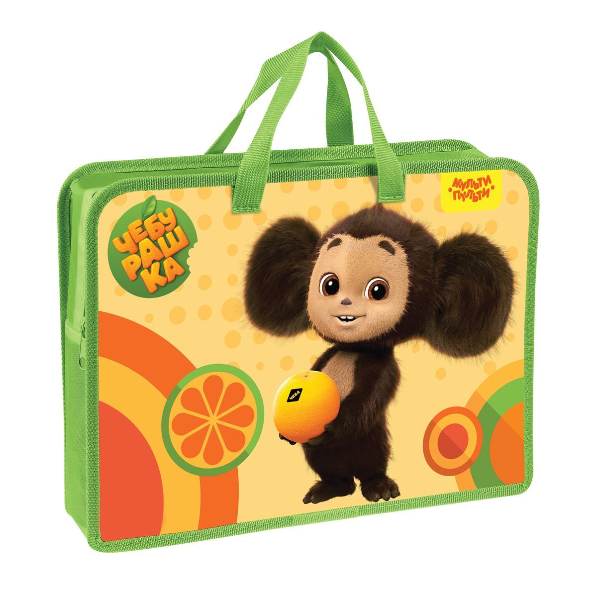 Папка с ручками А4 Мульти-Пульти "Чебурашка", пластик, на молнии, 75мм