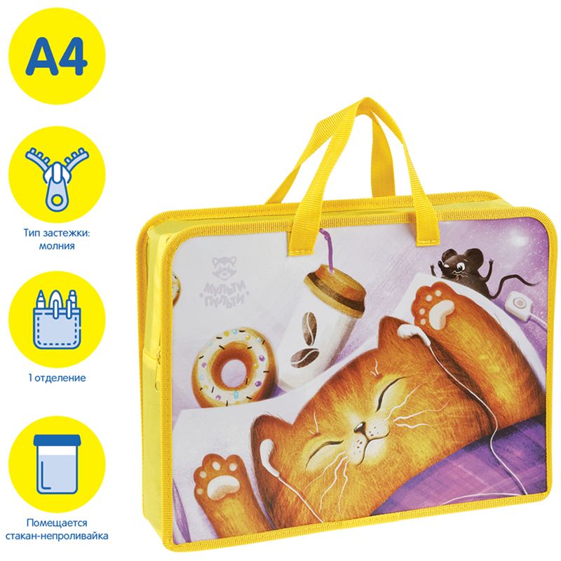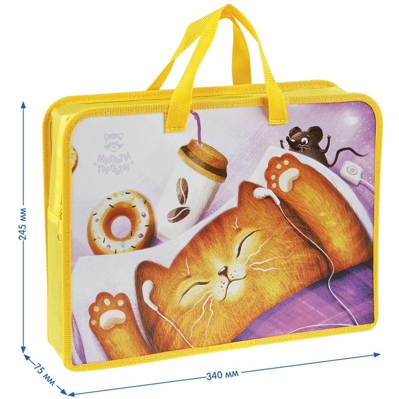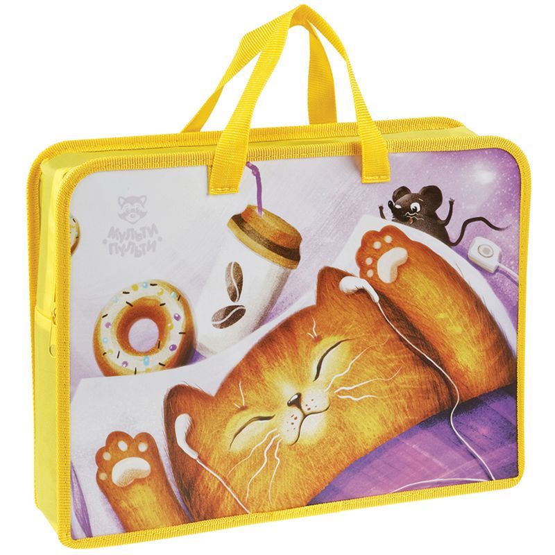 Папка с ручками А4 Мульти-Пульти "Lazy Cat", пластик, на молнии, 75мм