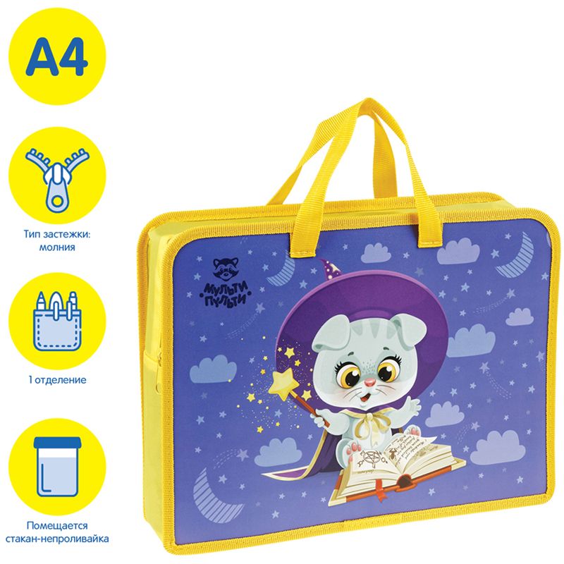 Папка с ручками А4 Мульти-Пульти " Magic", пластик, на молнии, 75мм