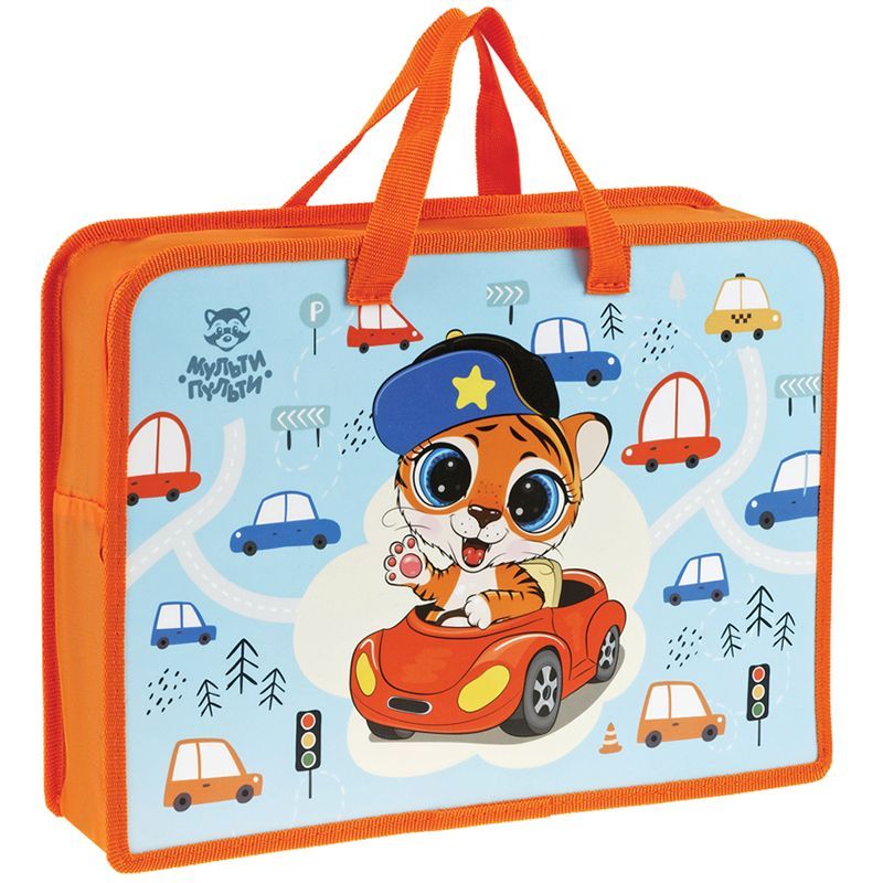 Папка с ручками А4 Мульти-Пульти "Tiger", пластик, на молнии, 75мм