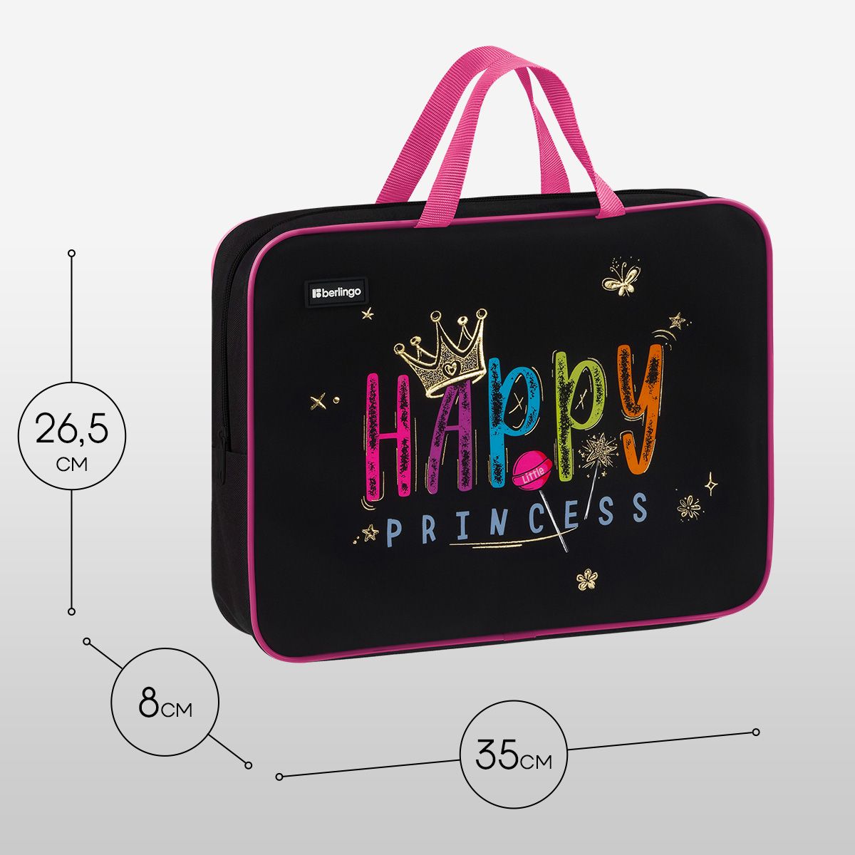 Папка текстильная с ручками 1 отделение, А4 Berlingo "Candy Princess", 350*265*80мм, текстиль, на молнии