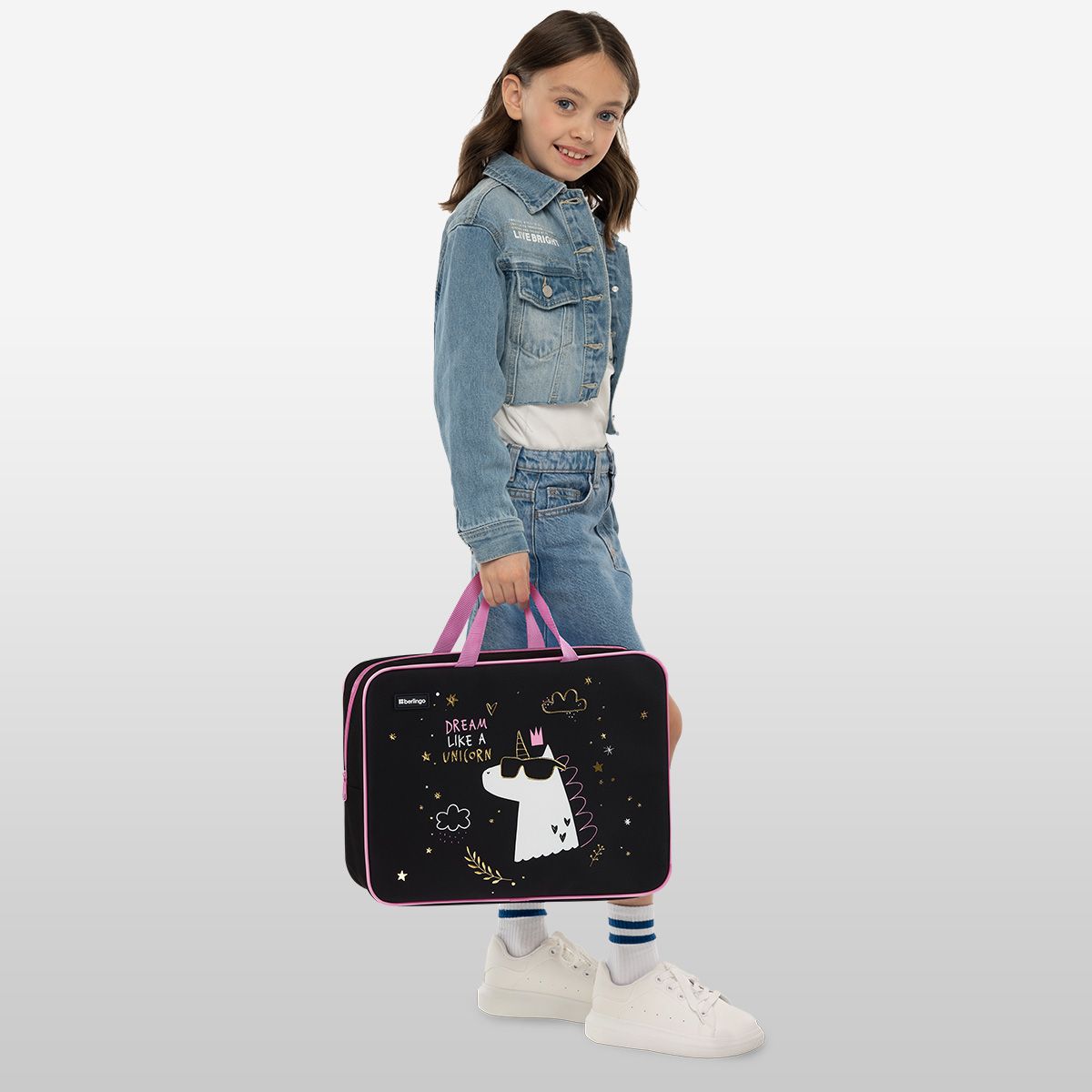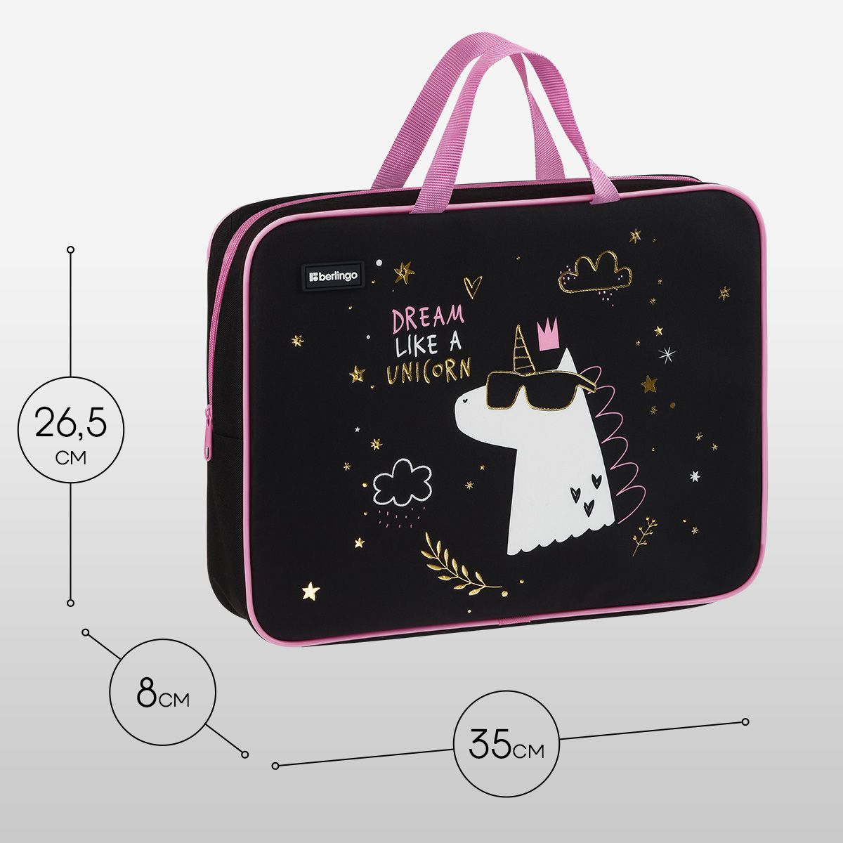 Папка текстильная с ручками 1 отделение, А4 Berlingo "Dream Like A Unicorn", 350*265*80мм, текстиль, на молнии