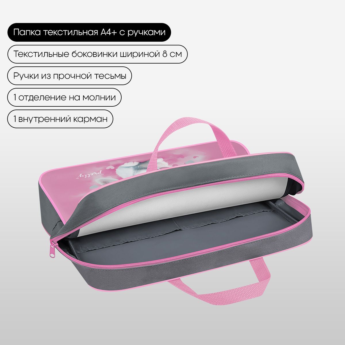 Папка текстильная с ручками 1 отделение, А4 Berlingo "Dreamy Bunny", 350*265*80мм, текстиль, на молнии