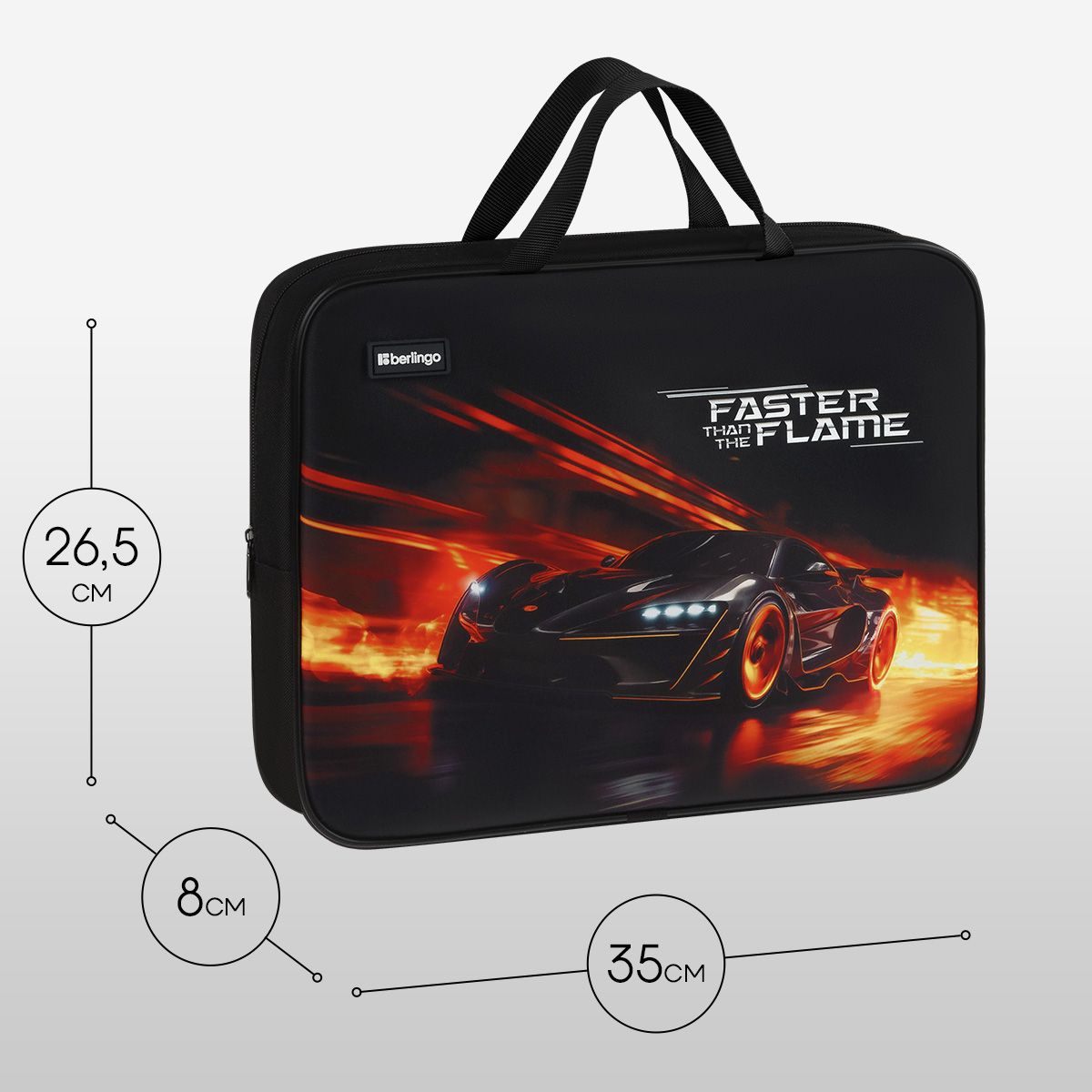 Папка текстильная с ручками 1 отделение, А4 Berlingo "Faster Than The Flame", 350*265*80мм, текстиль, на молнии