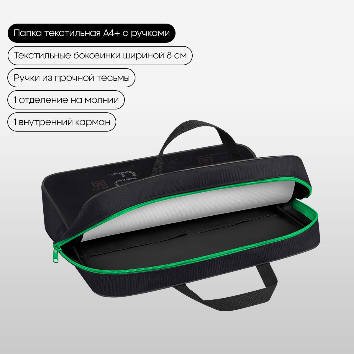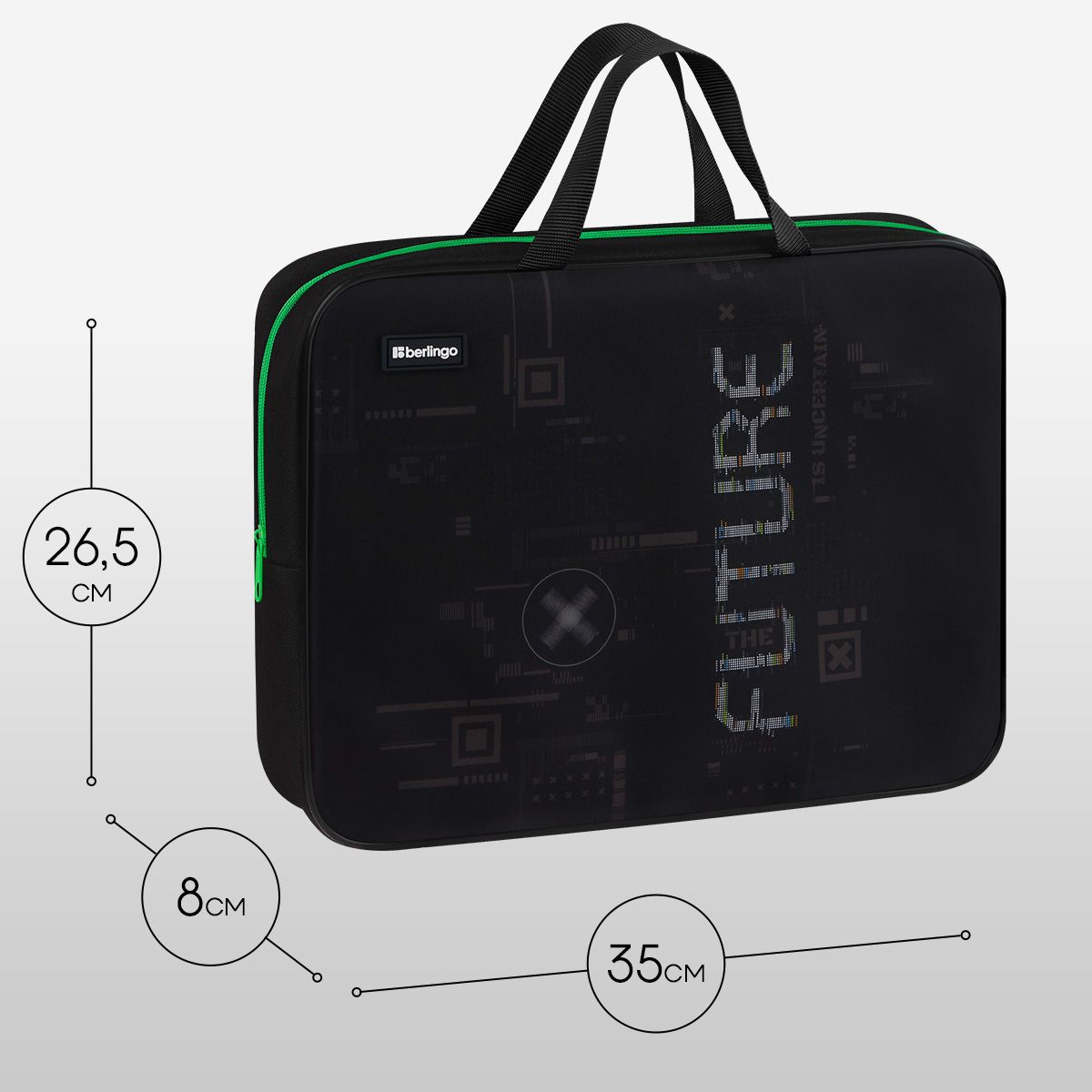 Папка текстильная с ручками 1 отделение, А4 Berlingo "FutureX", 350*265*80мм, текстиль, на молнии