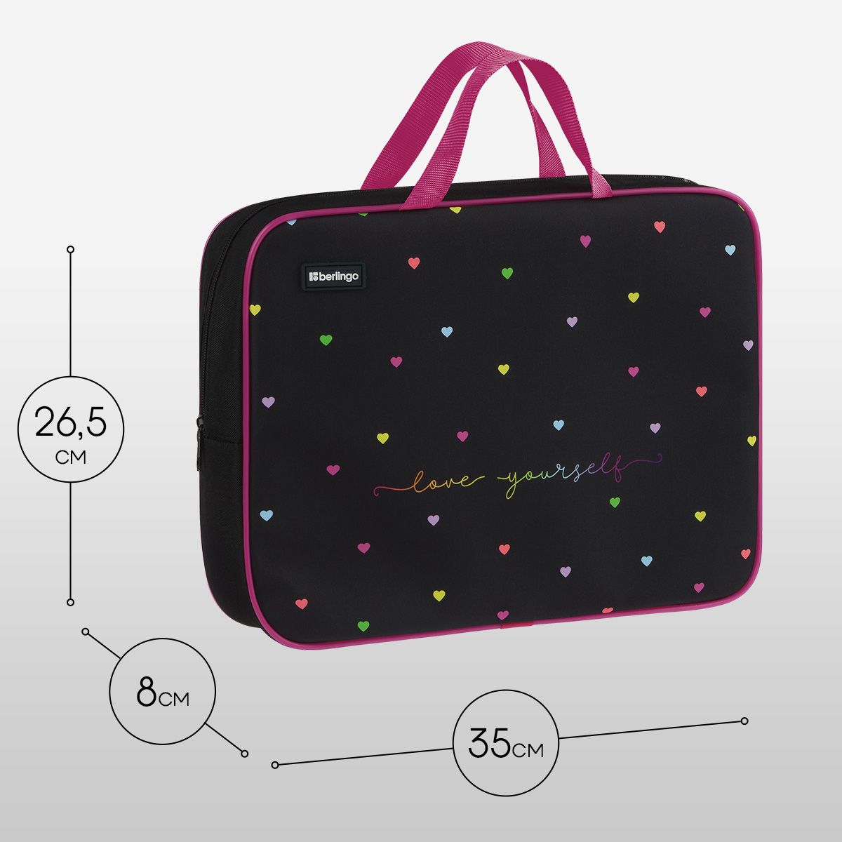Папка текстильная с ручками 1 отделение, А4 Berlingo "Love Yourself", 350*265*80мм, текстиль, на молнии