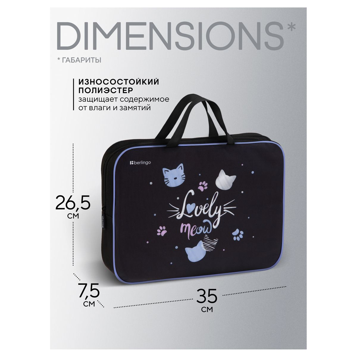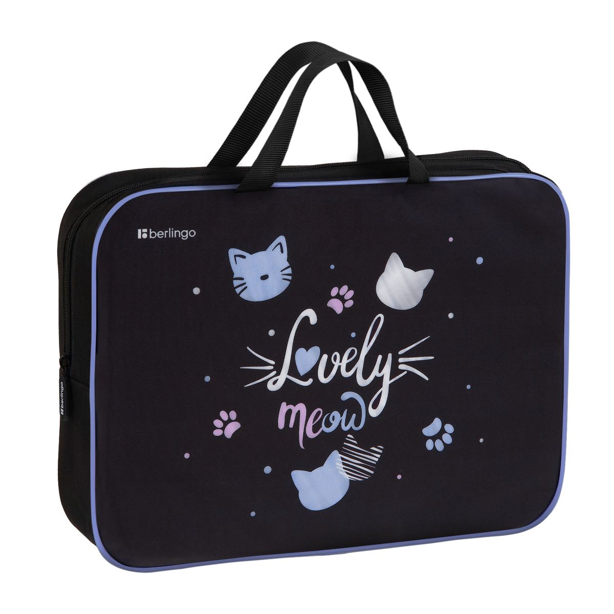 Папка текстильная с ручками 1 отделение, А4 Berlingo "Lovely Meow", 350*265*75мм, текстиль, на молнии