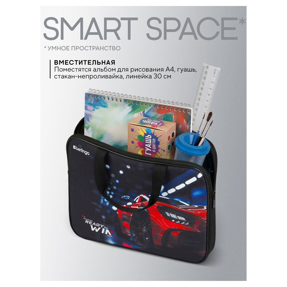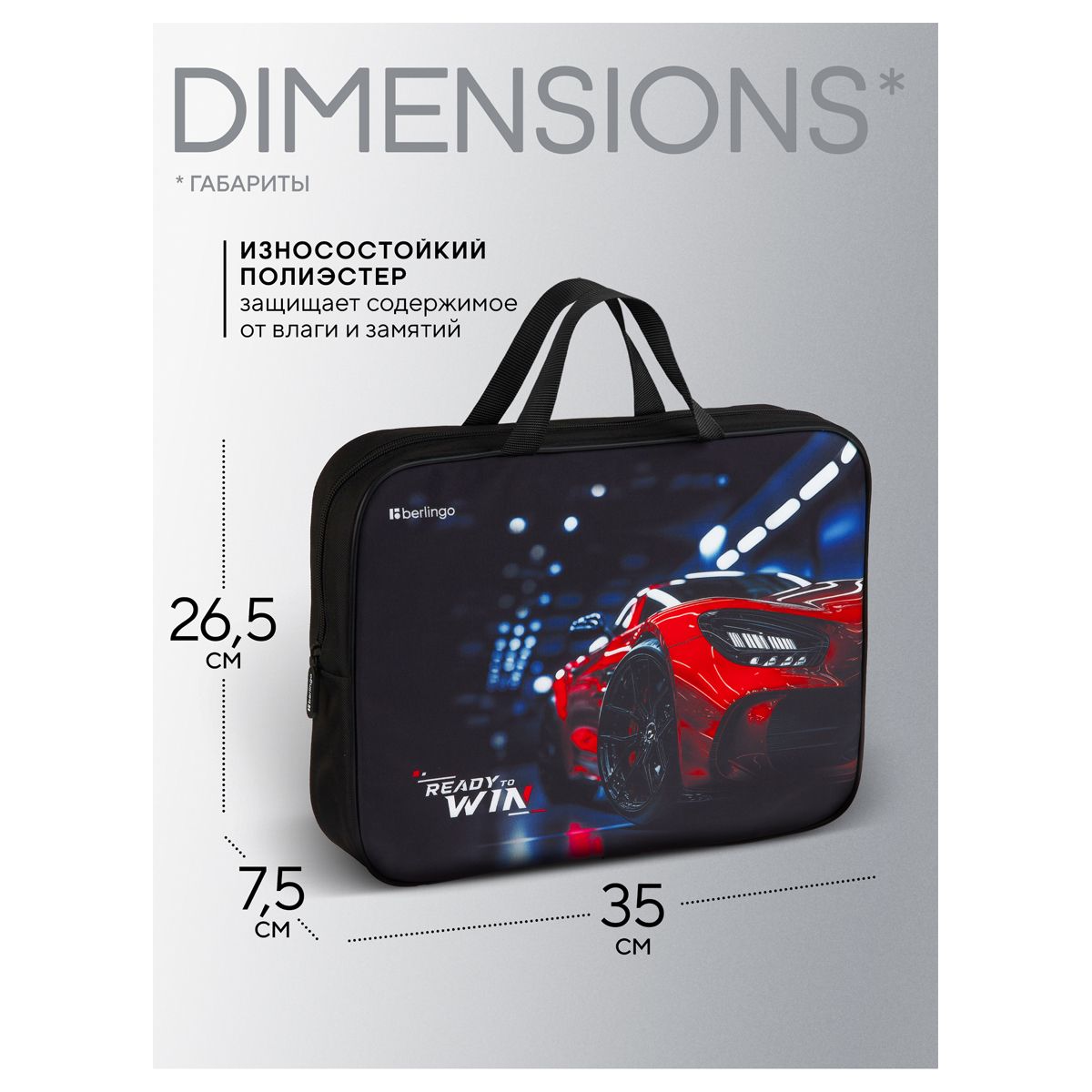 Папка текстильная с ручками 1 отделение, А4 Berlingo "Ready to win", 350*265*75мм, текстиль, на молнии