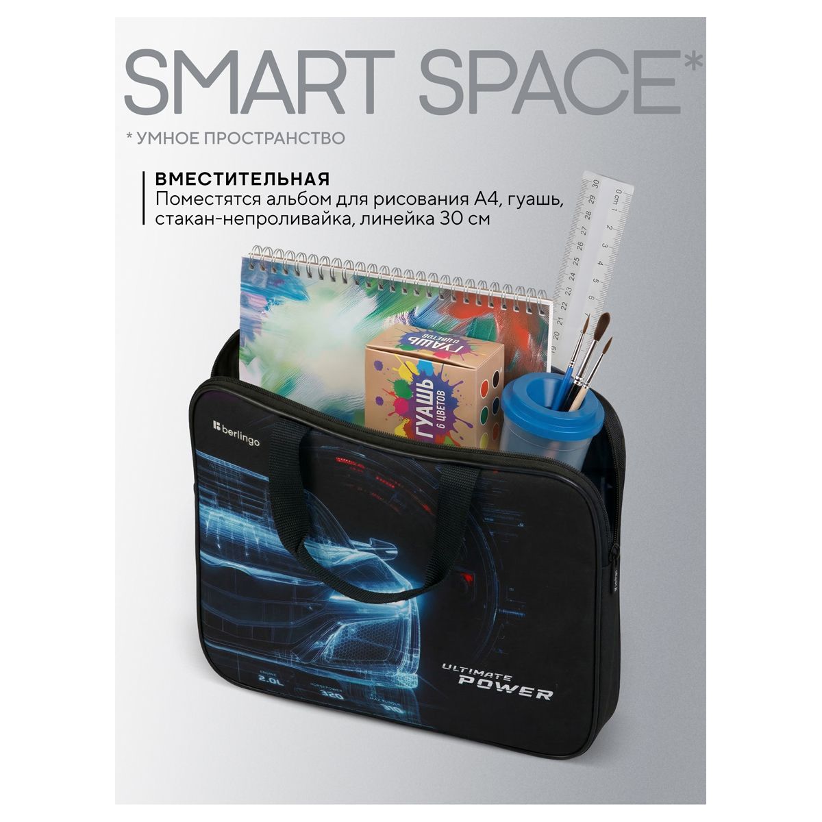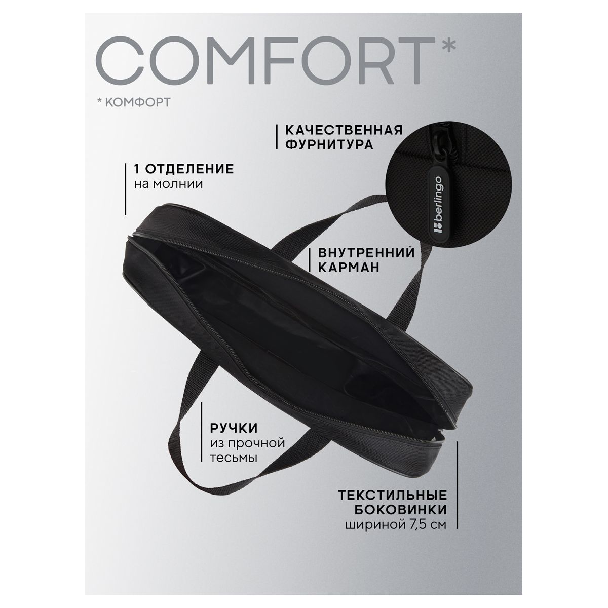 Папка текстильная с ручками 1 отделение, А4 Berlingo "Ultimate power", 350*265*75мм, текстиль, на молнии