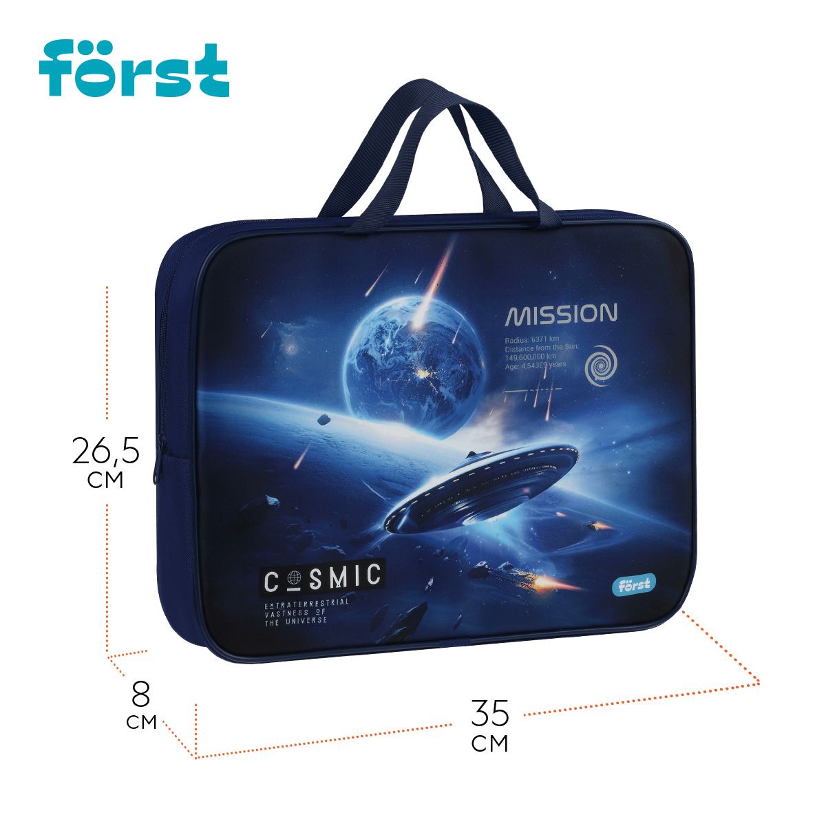 Папка текстильная с ручками 1 отделение, А4 Först "Cosmic", 350*265*80мм, текстиль, на молнии