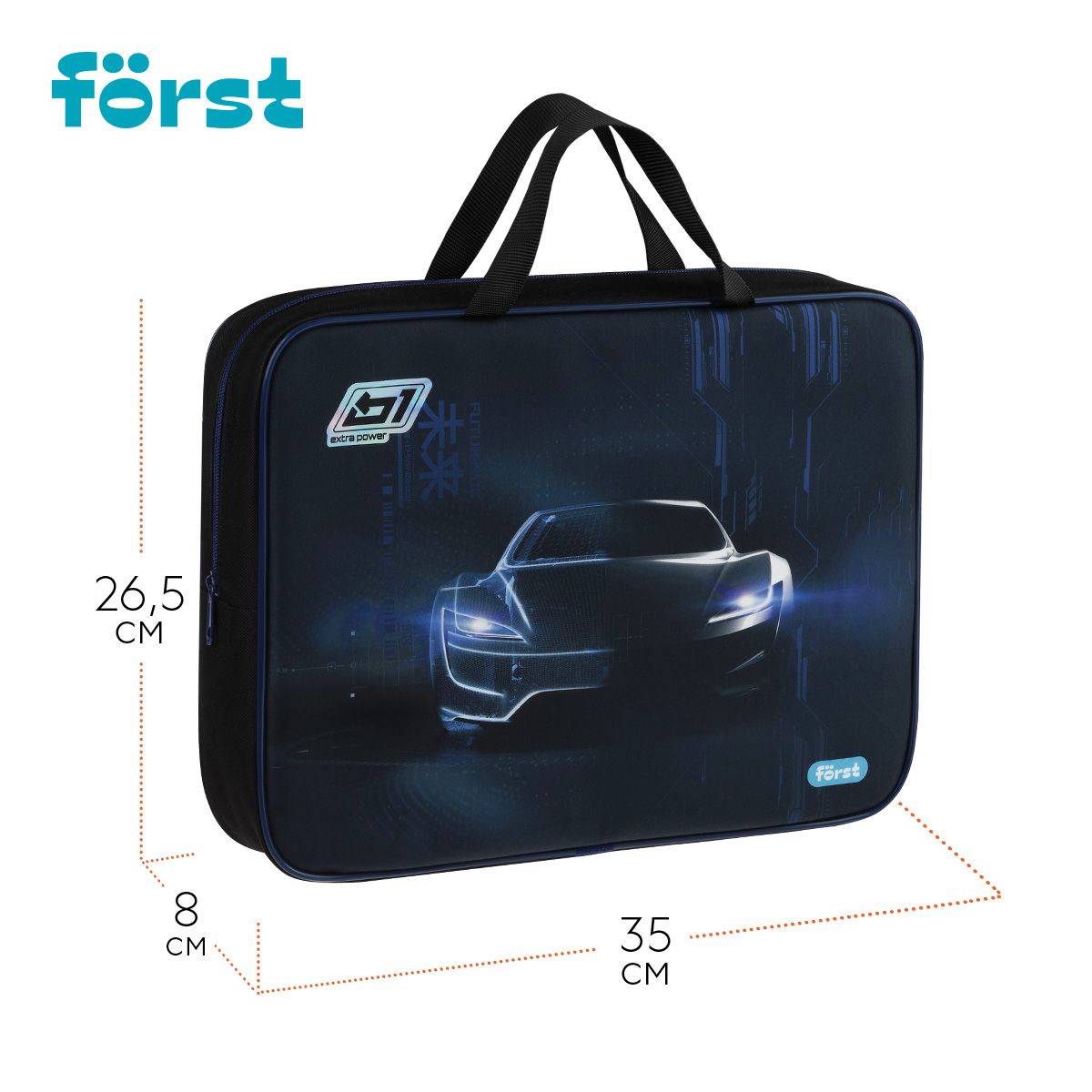 Папка текстильная с ручками 1 отделение, А4 Först "Extra Power", 350*265*80мм, текстиль, на молнии