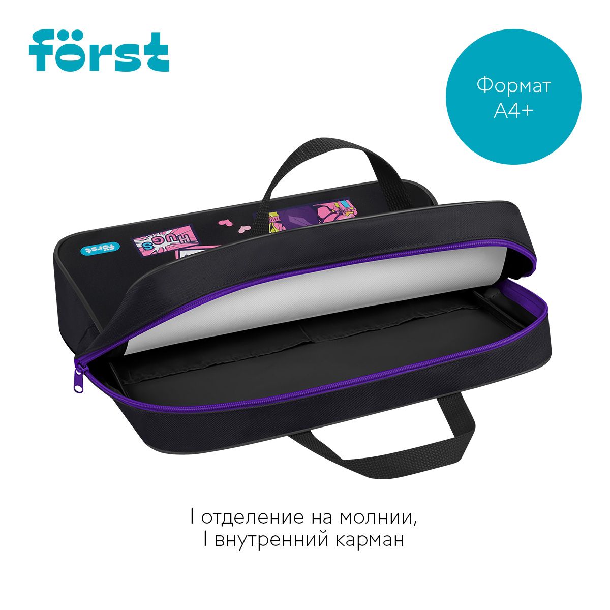 Папка текстильная с ручками 1 отделение, А4 Först "Kawaii", 350*265*80мм, текстиль, на молнии