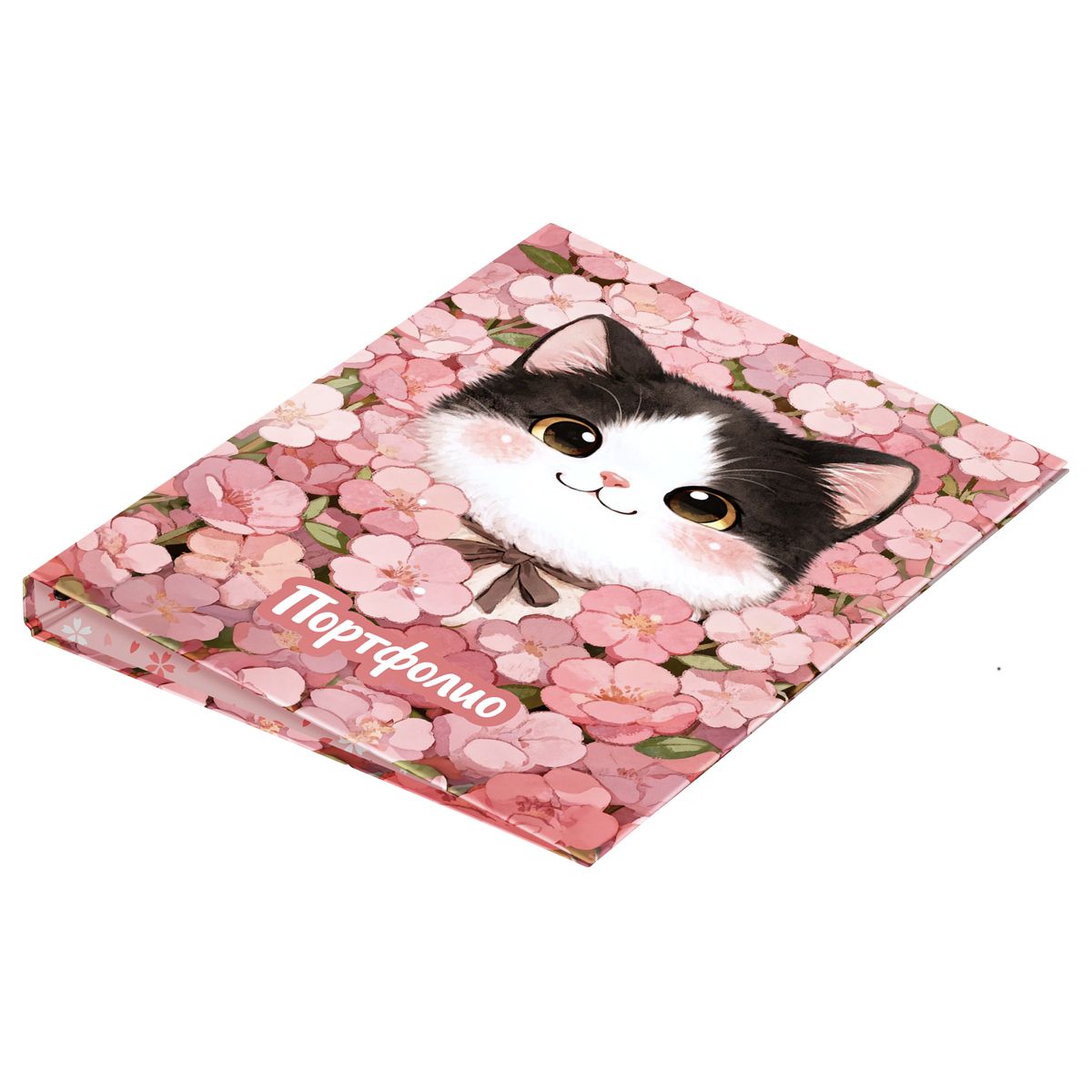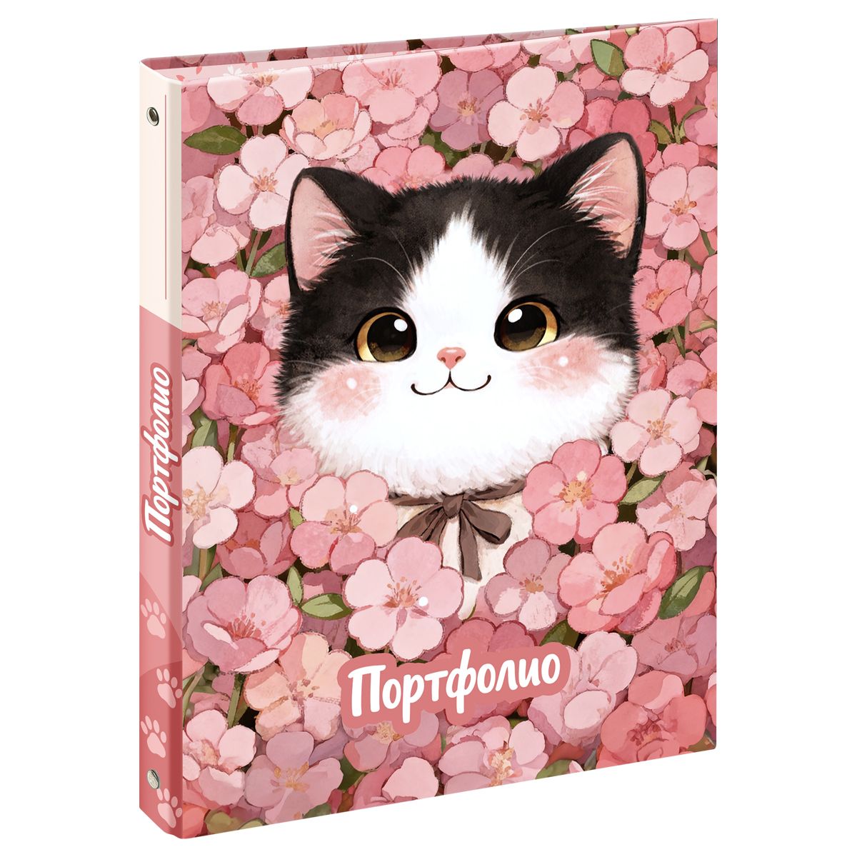 Папка-портфолио 7БЦ А4 BG, на 4 кольцах, для школьницы "Котёнок в цветах", 20 файлов