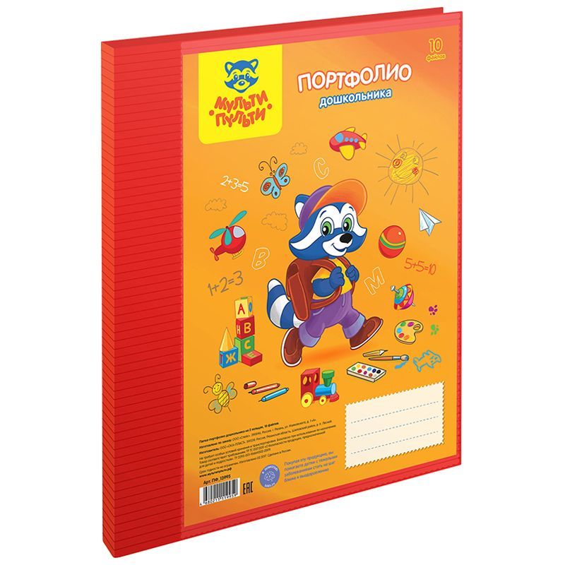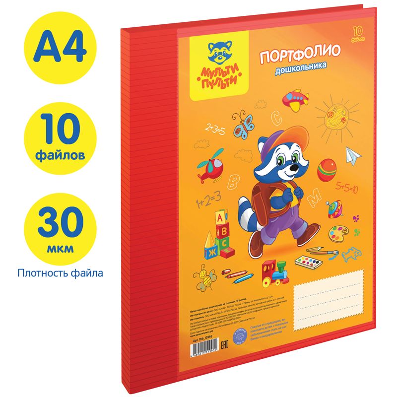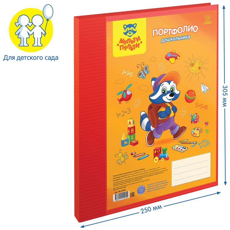 Папка-портфолио пластиковая А4 Мульти-Пульти, на 2 кольцах для дошкольника, 10 файлов