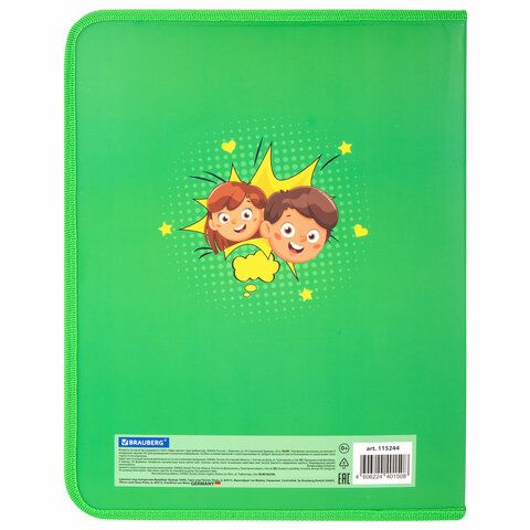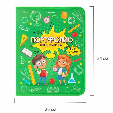Папка-портфолио школьника, А4, на молнии, 8 вкладышей, обложка твёрдая, ОТЛИЧНИКИ, BRAUBERG, 115244