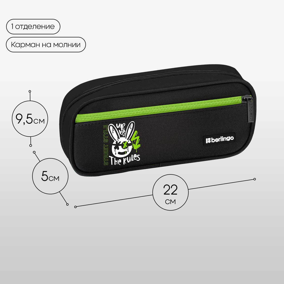 Пенал 1 отделение, 1 карман, 220*95*50 Berlingo "The Rules", полиэстер, откидная планка