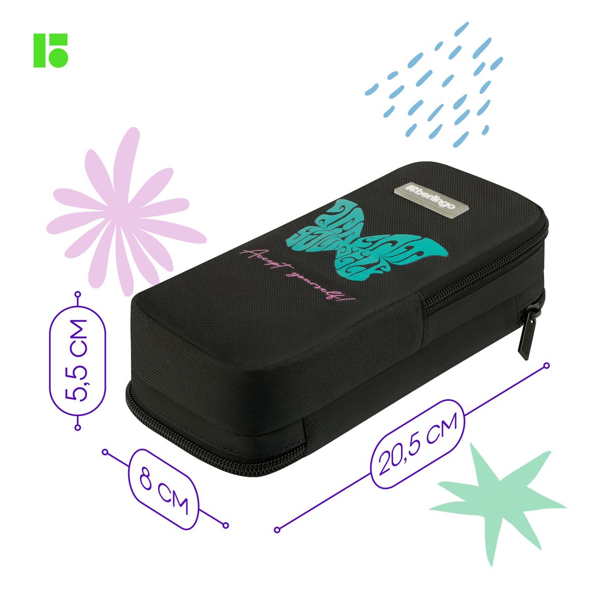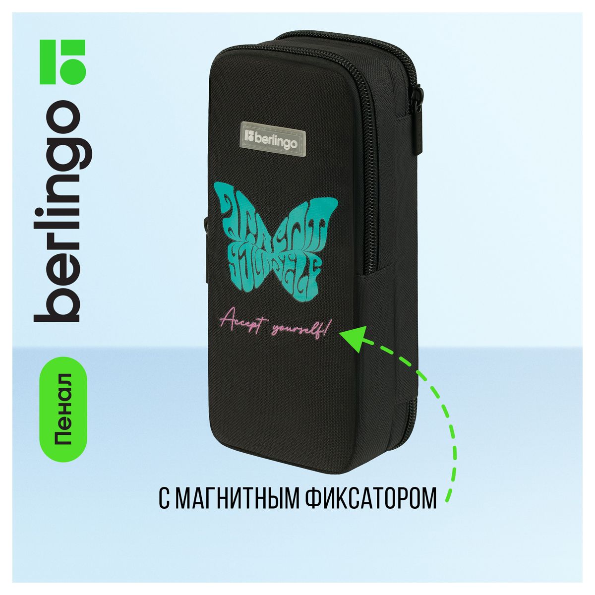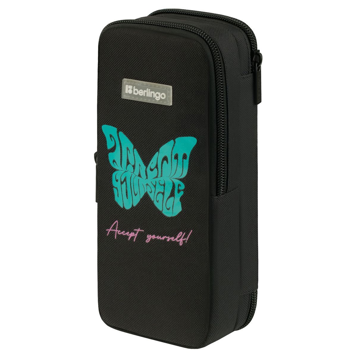 Пенал 2 отделения, 205*80*55 Berlingo "Butterfly", полиэстер, внутренний органайзер, магнит