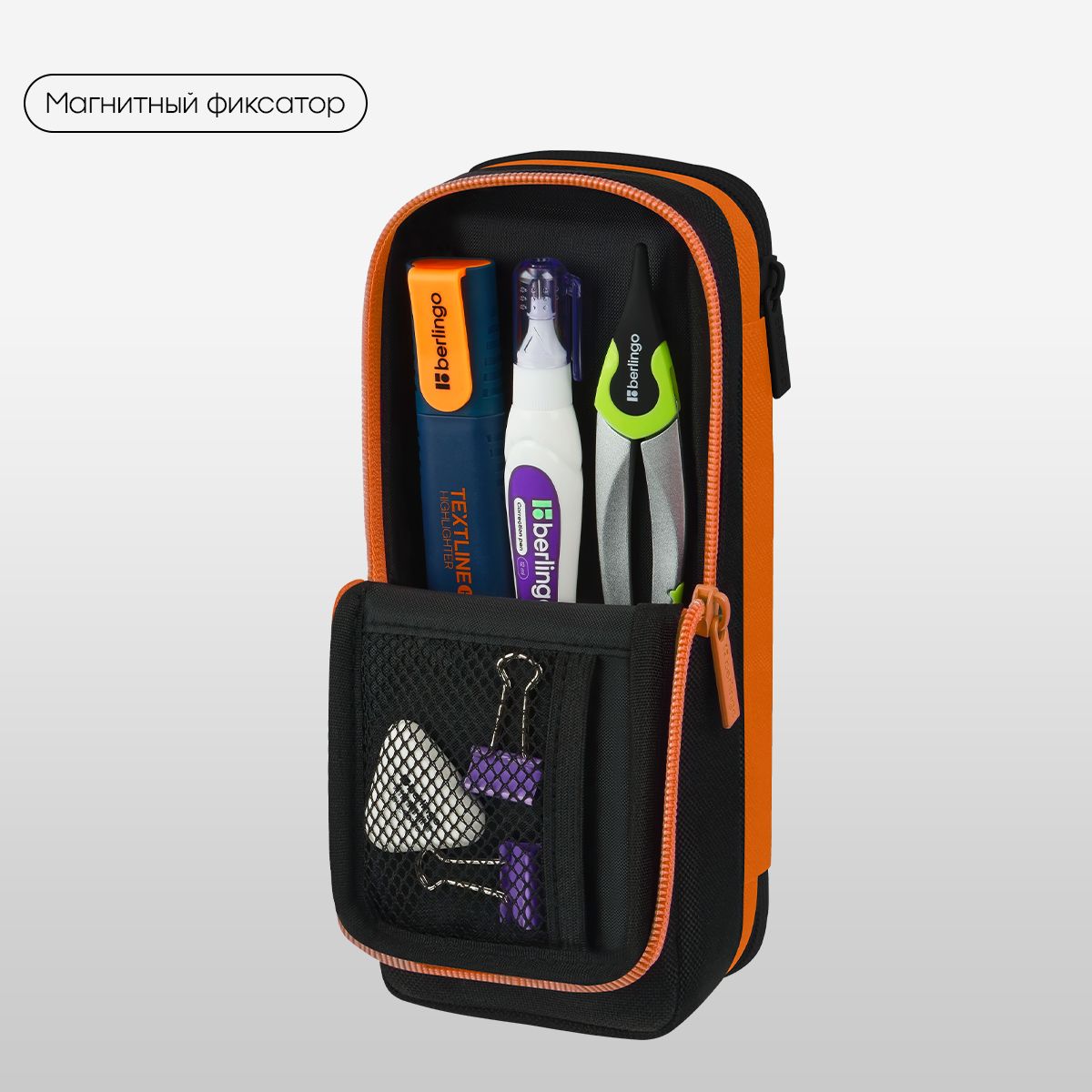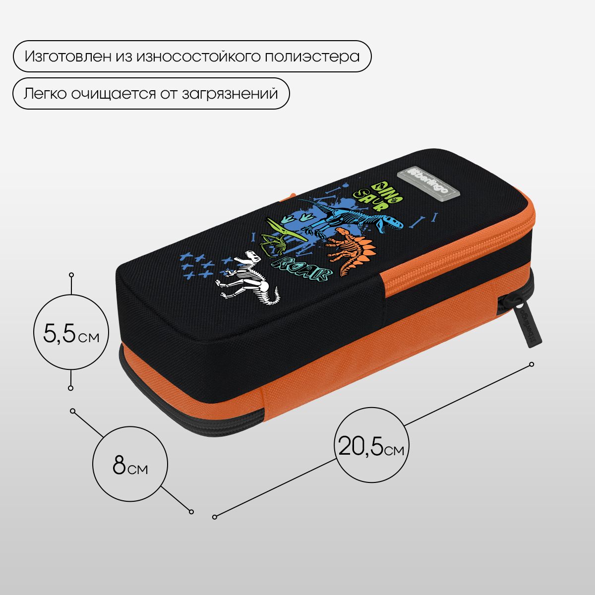Пенал 2 отделения, 205*80*55 Berlingo "Dinosaur", полиэстер, внутренний органайзер, магнит