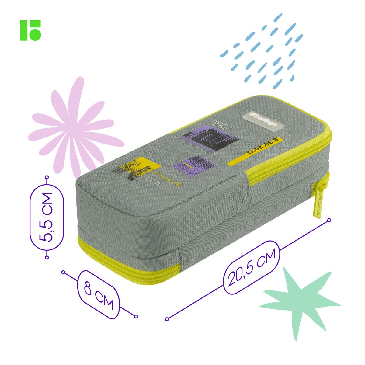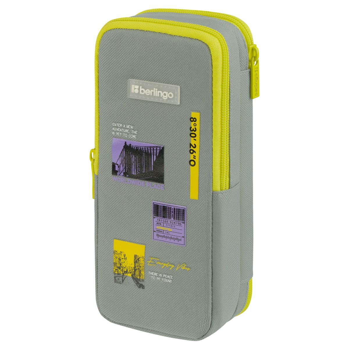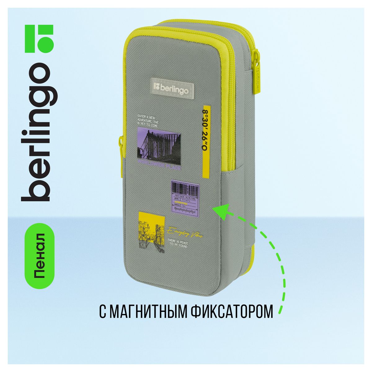 Пенал 2 отделения, 205*80*55 Berlingo "Light grey", полиэстер, внутренний органайзер, магнит