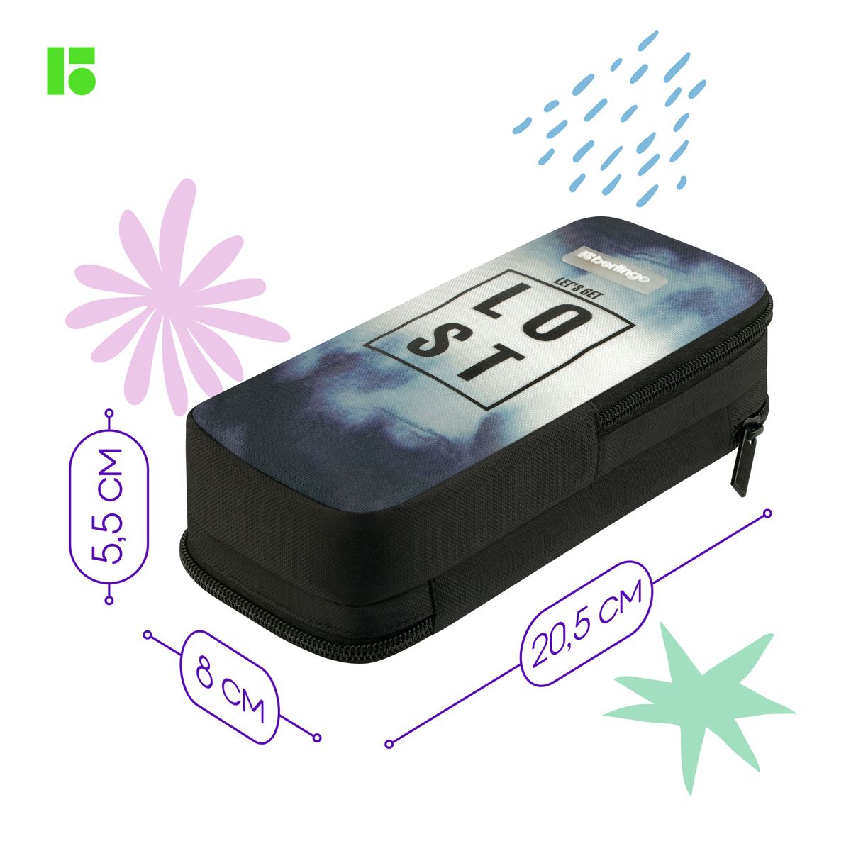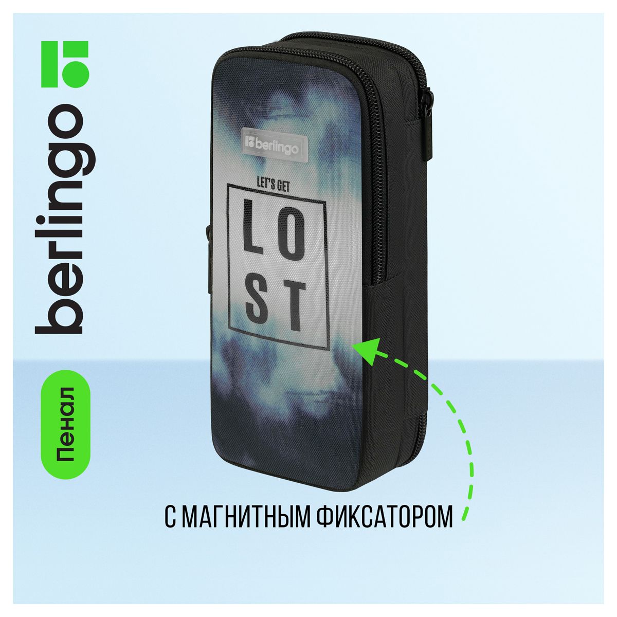 Пенал 2 отделения, 205*80*55 Berlingo "Lost", полиэстер, внутренний органайзер, магнит
