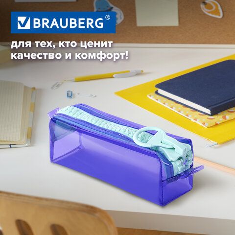 Пенал BRAUBERG с объемной "тракторной" молнией, 1 отделение, ПВХ, 22х8х6,5 см, "Contrast mint", 271565