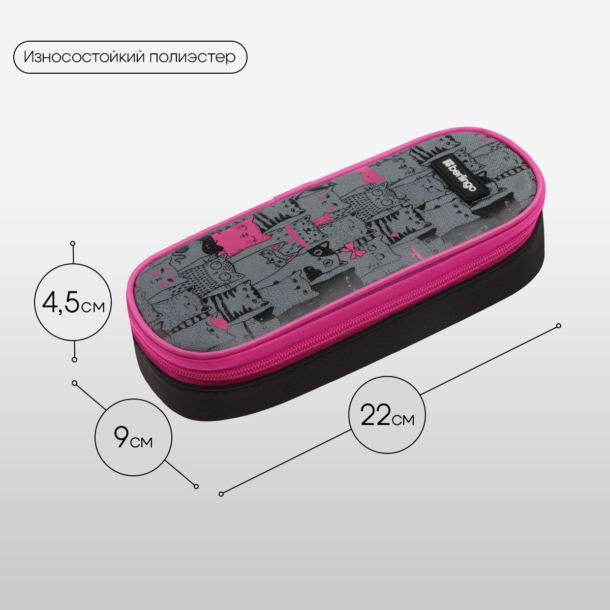 Пенал корпусный 1 отделение, 220*90*45 мм, Berlingo "Happy Cats", полиэстер