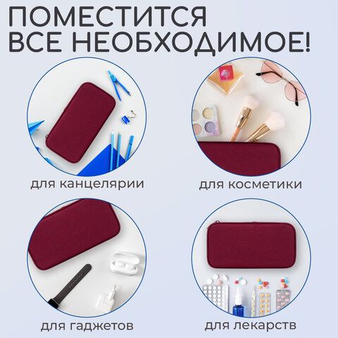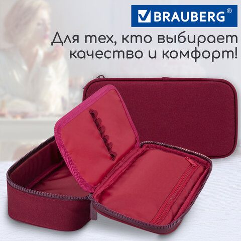 Пенал-косметичка BRAUBERG, 1 отделение, органайзер, полиэстер, 22x11,5x6 см, винный, 270845