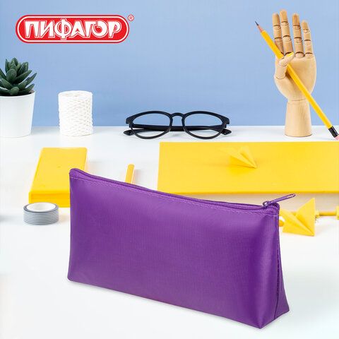 Пенал-косметичка ПИФАГОР на молнии, текстиль, фиолетовый, 19х4х9 см, 229003