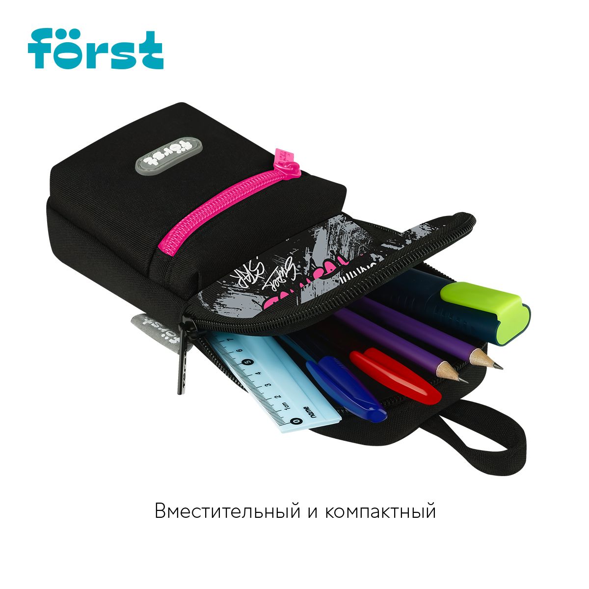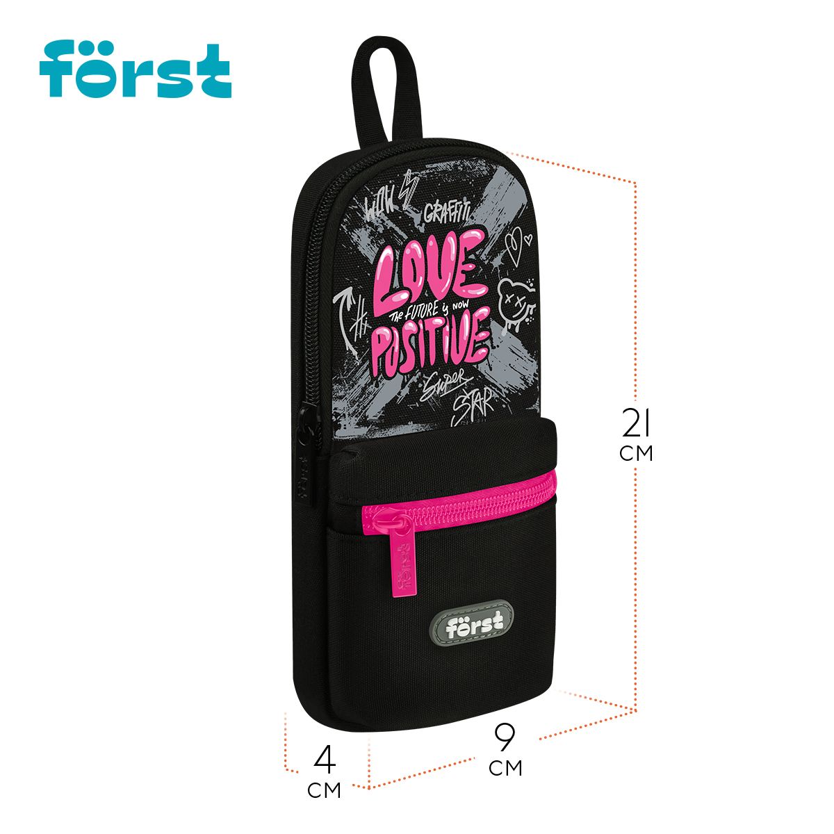 Пенал мягкий 1 отделение, 1 карман, 210*90*40 Först "Love positive", текстиль