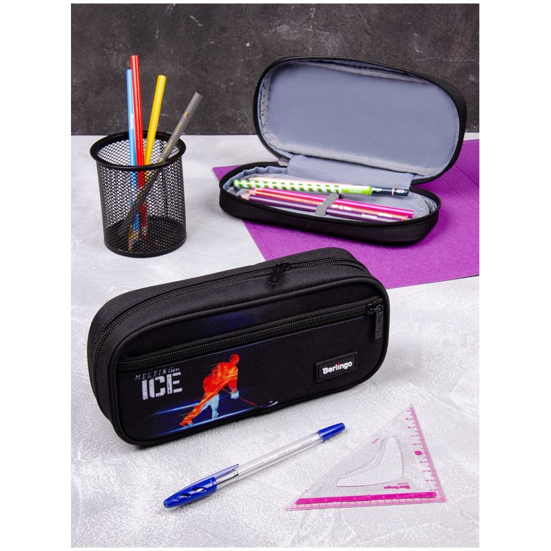 Пенал мягкий 1 отделение, 1 карман, 220*95*50 Berlingo "Hockey", полиэстер, откидная планка