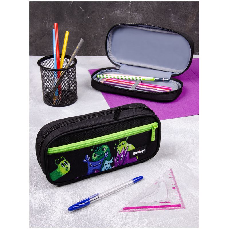 Пенал мягкий 1 отделение, 1 карман, 220*95*50 Berlingo "Monsters", полиэстер, откидная планка