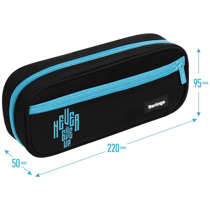 Пенал мягкий 1 отделение, 1 карман, 220*95*50 Berlingo "Never give up", полиэстер, откидная планка