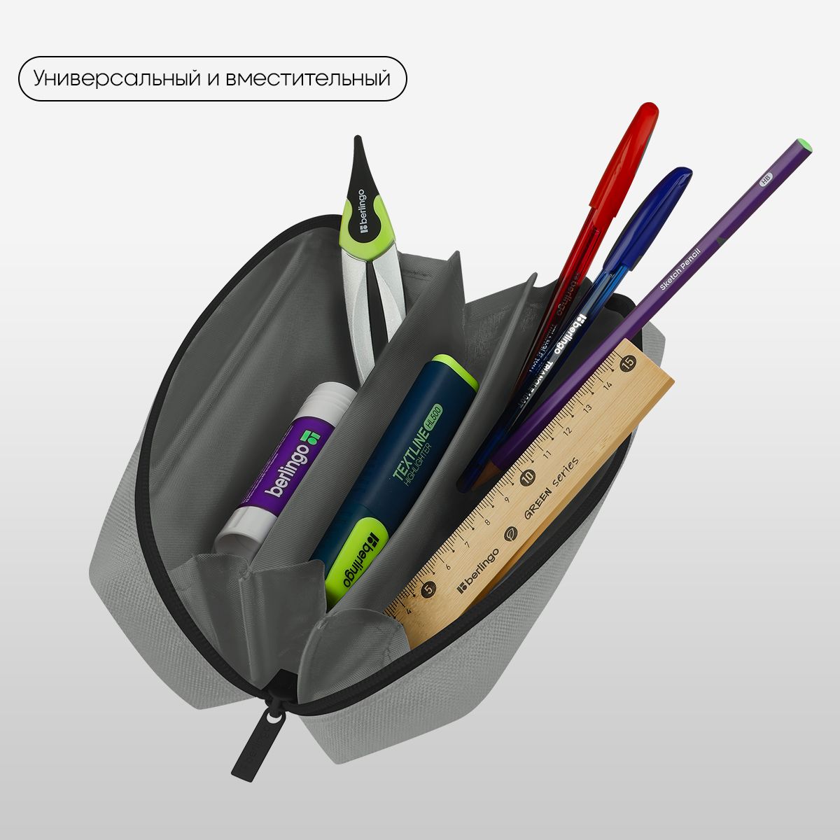 Пенал мягкий 1 отделение, 205*60*65 Berlingo "Grey", полиэстер
