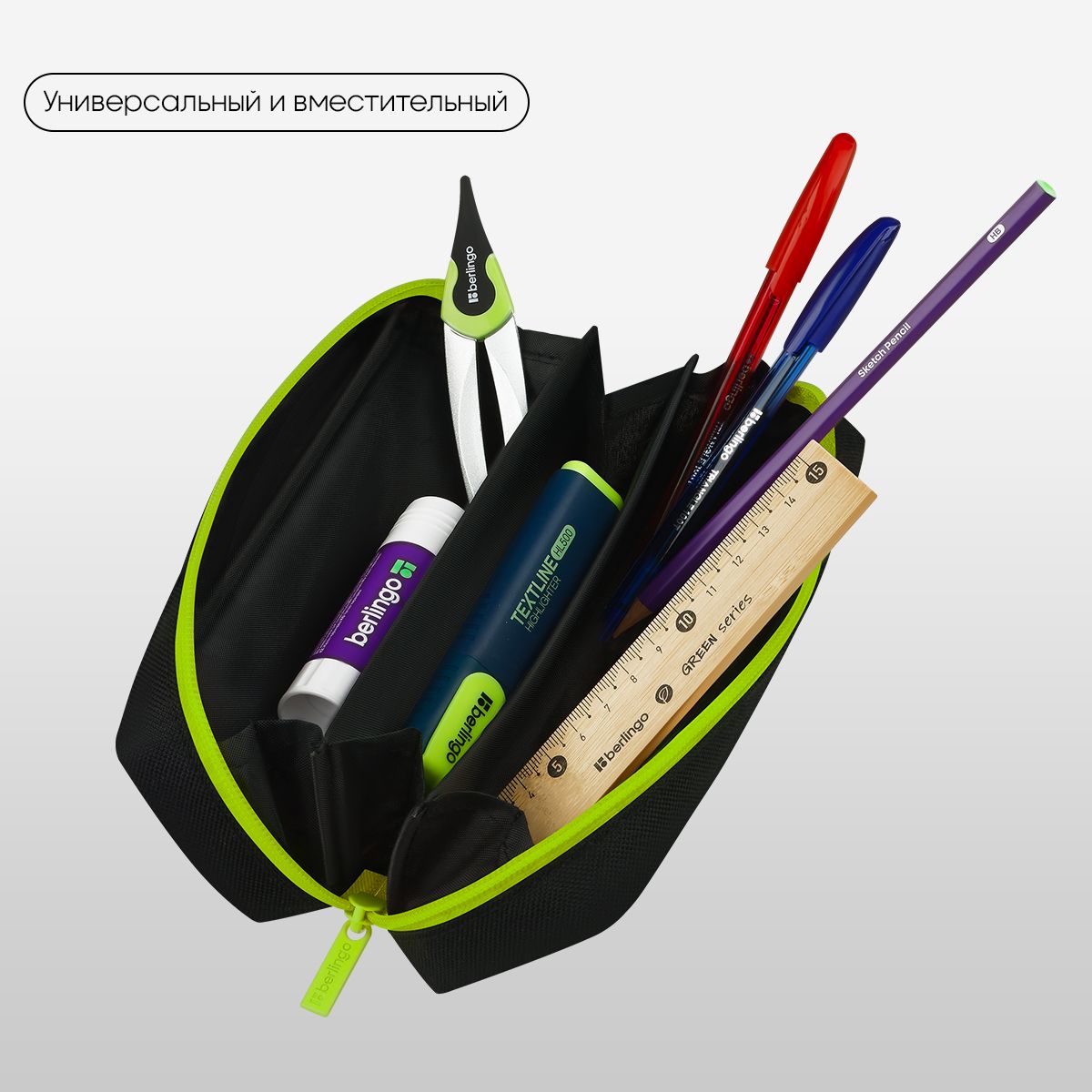 Пенал мягкий 1 отделение, 205*60*65 Berlingo "Light green", полиэстер