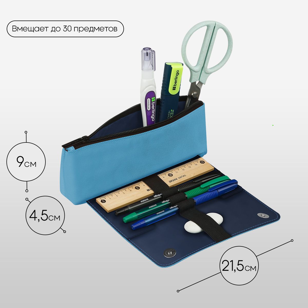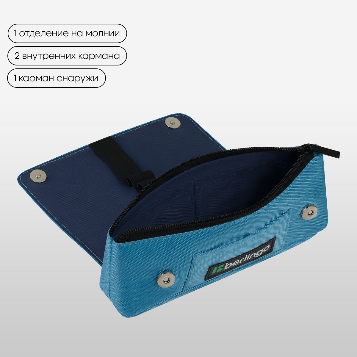 Пенал мягкий 1 отделение, 215*90*45 мм, Berlingo "Light blue focus", полиэстер, внутренний органайзер, магнит