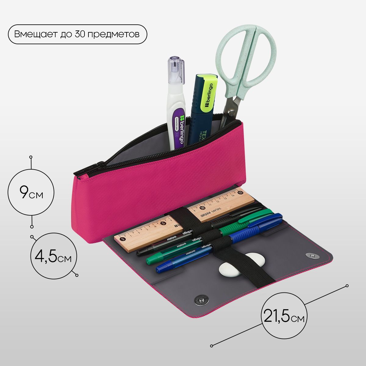 Пенал мягкий 1 отделение, 215*90*45 мм, Berlingo "Pink focus", полиэстер, внутренний органайзер, магнит
