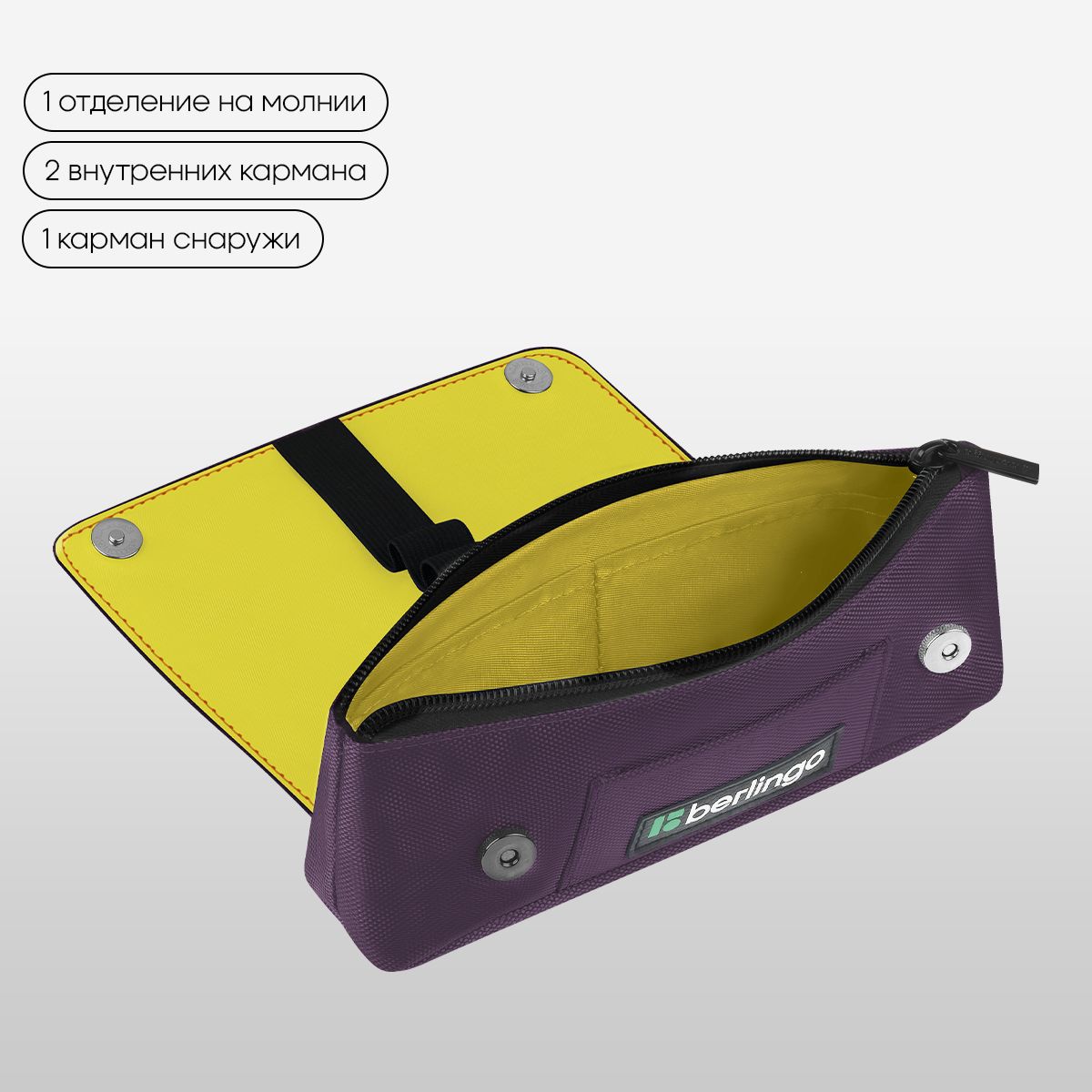 Пенал мягкий 1 отделение, 215*90*45 мм, Berlingo "Purple focus", полиэстер, внутренний органайзер, магнит