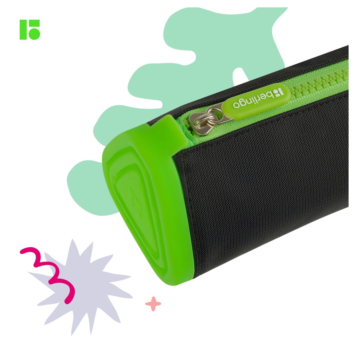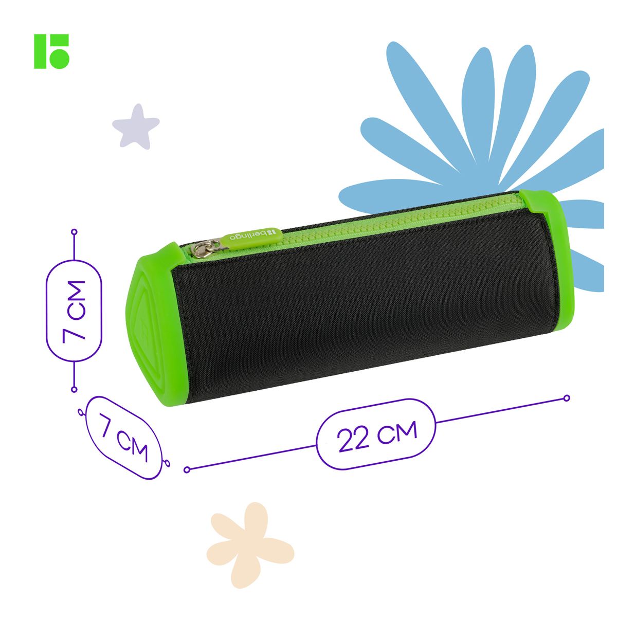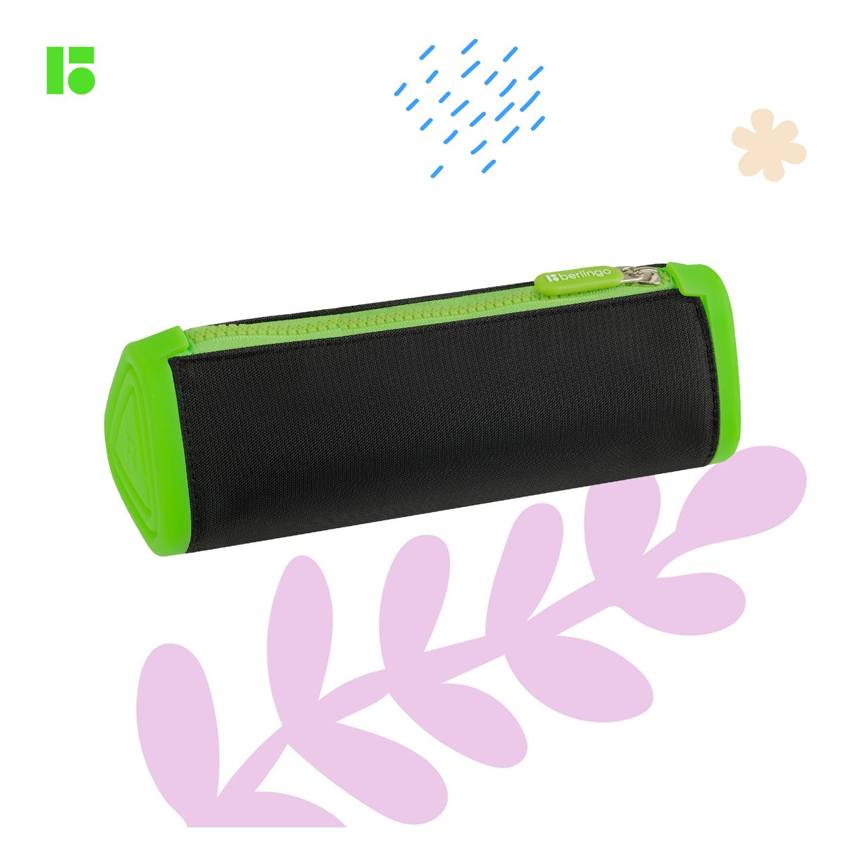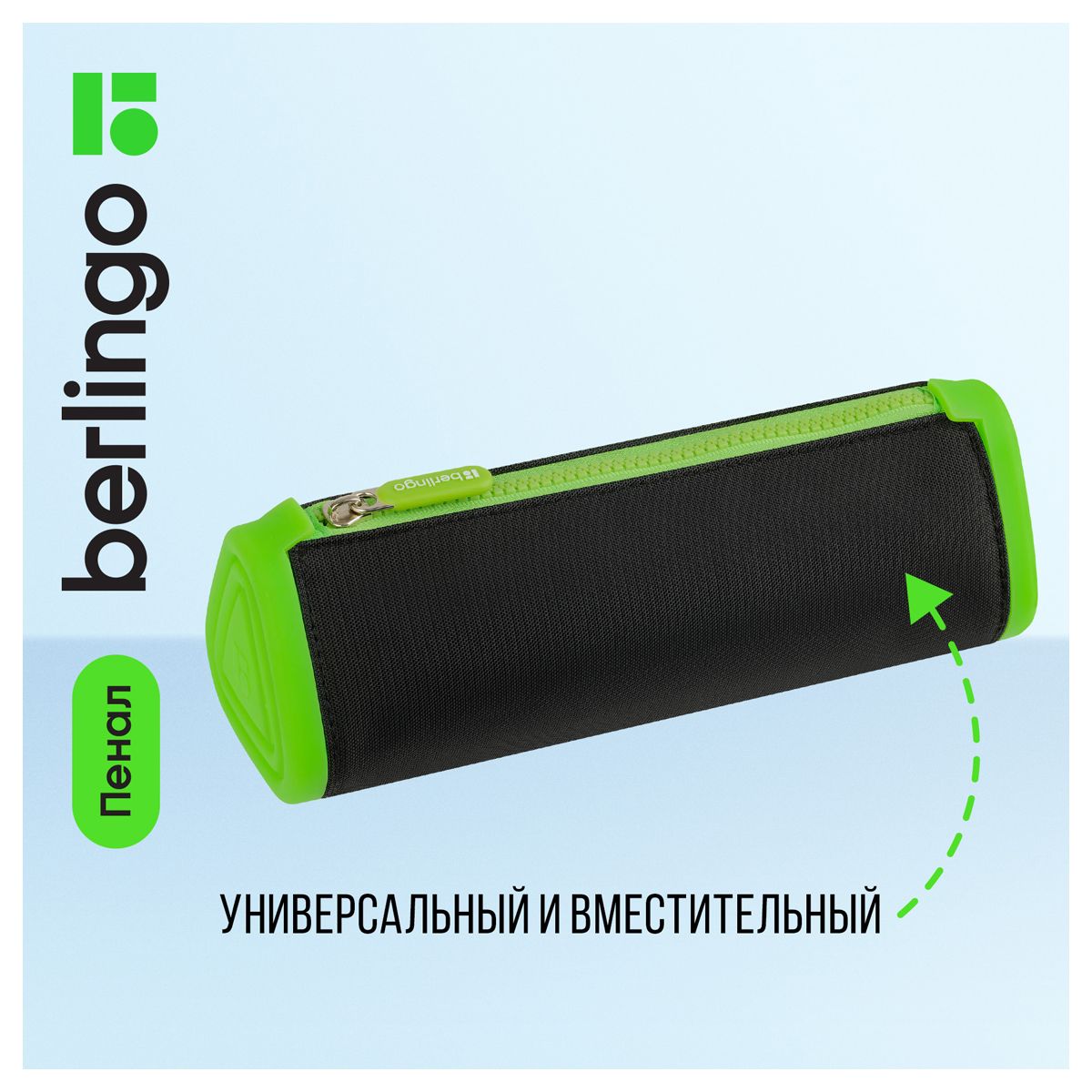 Пенал мягкий 1 отделение, 220*70*70 Berlingo "Black and green", полиэстер