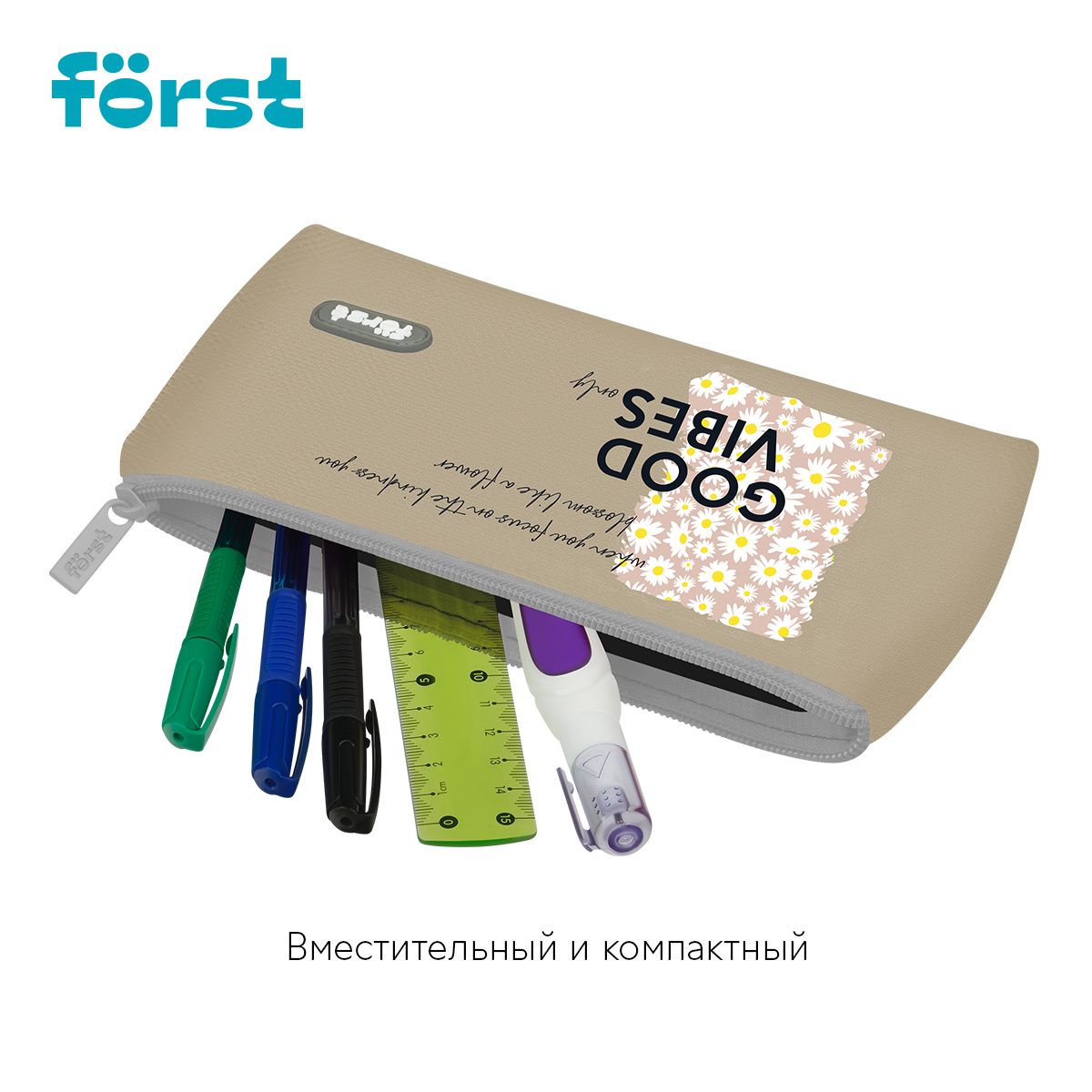 Пенал мягкий 1 отделение, 225*120*35 Först "Good vibes", текстиль