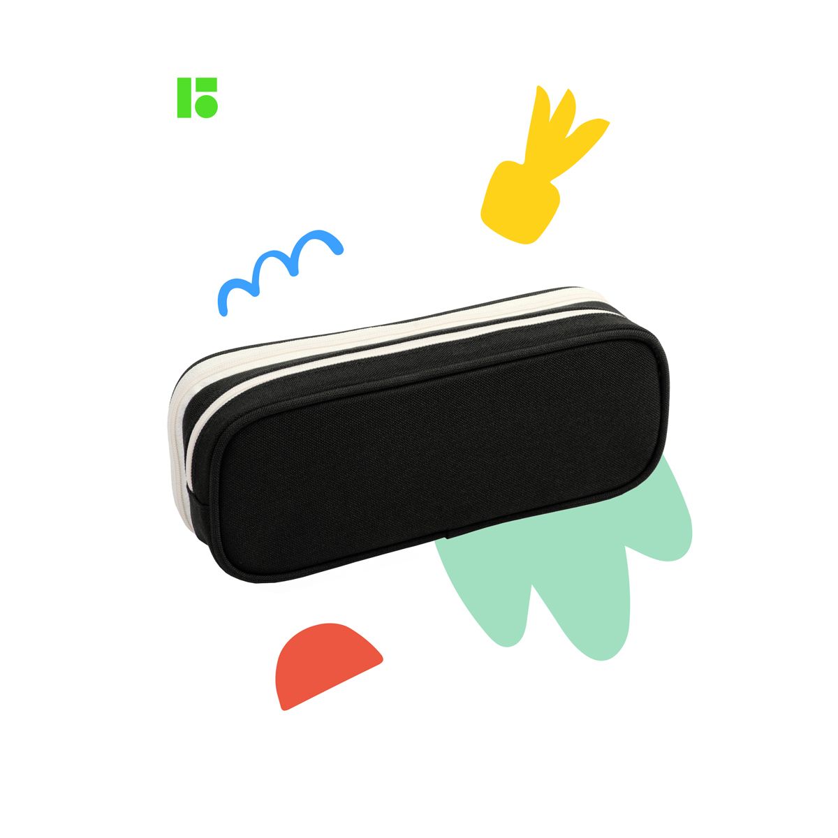Пенал мягкий 2 отделения, 1 карман, 220*80*50 Berlingo "Classic black", полиэстер, внутренний органайзер